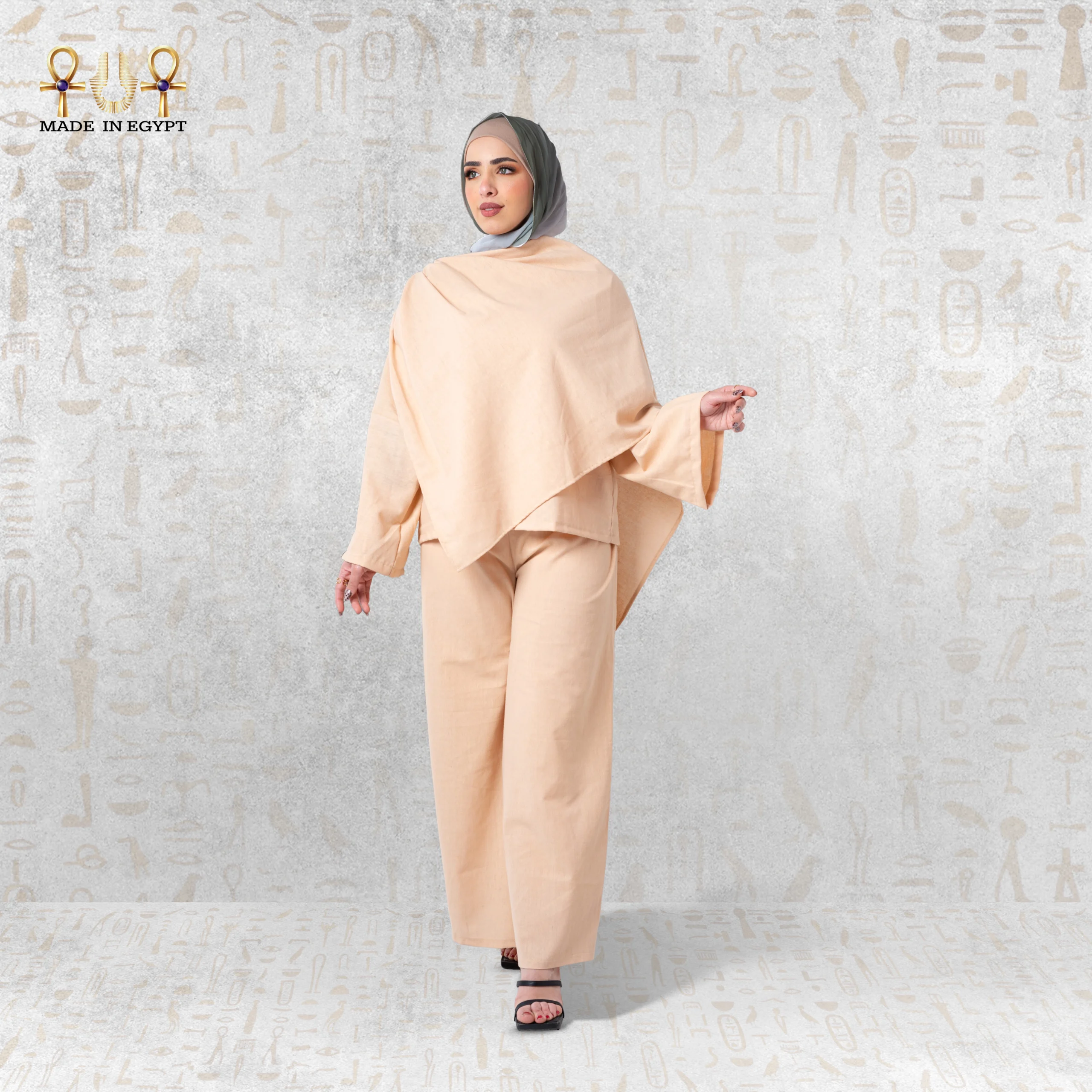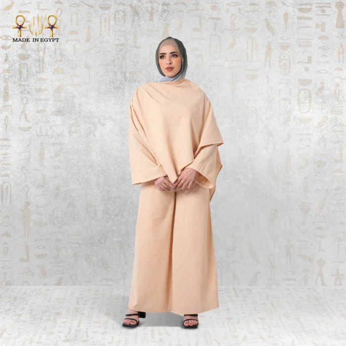 طقم Sahara Flow هو قطعة أنيقة تعكس هدوء الطبيعة ورُقي الصحراء في تصميم واحد. يأتي بلون بيج دافئ ينساب بسلام فوق القماش، ليمنحك إحساسًا بالبساطة والجمال في كل مرة ترتدينه. هذا الطقم هو خيارك الأمثل عندما ترغبين في إطلالة عملية تجمع بين الراحة والتوازن والأناقة المحتشمة.