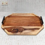 تتميز صواني التقديم الخشبية بالمقابض المعدنية بمقابض سوداء أنيقة تضيف لمسة فخمة ومعاصرة في الوقت نفسه. هذه المقابض لا تُضفي فقط طابعًا جماليًا، بل توفر أيضًا قبضة قوية ومريحة أثناء التقديم، مما يجعل استخدامها سهلًا وآمنًا. يمكنك تقديم المشروبات، الحلويات أو وجبات الإفطار عليها بكل أناقة. كما يمكن وضعها على طاولة القهوة أو السفرة كقطعة ديكور تضفي دفئًا وأناقة على المكان.