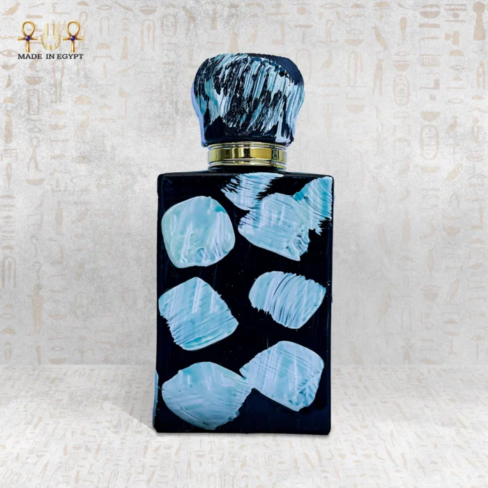 زجاجة لهب من لوميير تعكس الفكرة بصريًا، باللونين الأسود والتركواز المضيء، كأنها لوحات من الحمم الباردة بعد انفجار بركاني. التصميم يرمز للتناقض بين الانطلاق والسيطرة، ويحوّل الزجاجة إلى قطعة فنية فاخرة ومعبّرة.