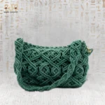 علاوة على ذلك، يتميز تصميم الشنطة بنمط مكرمية متداخل بعناية فائقة. تتشابك العقد والخيوط في هندسة دقيقة تعكس مهارة الحرفي المصري واهتمامه بالتفاصيل. هذا النمط الفريد يجعل كل حقيبة من إيميرالد نوت قطعة فنية متفردة لا تتكرر أبدًا.