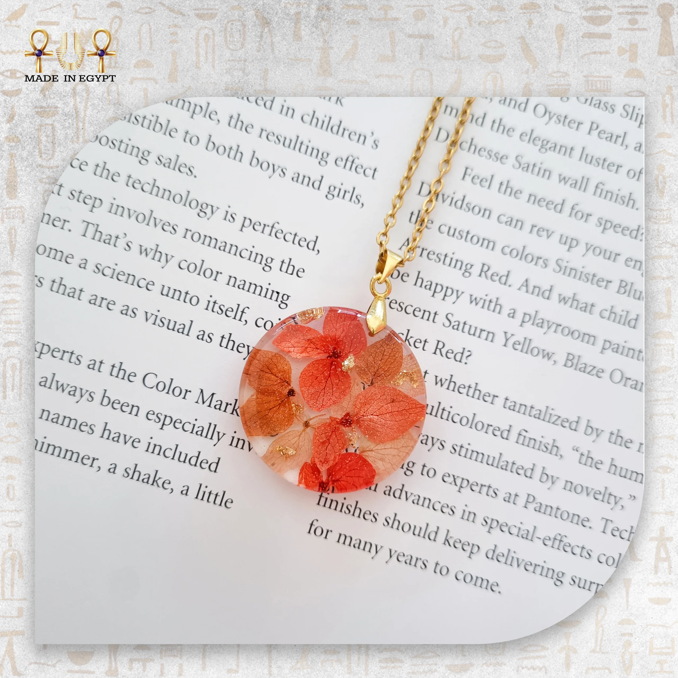 تُصنع كل سلسلة يدويًا بدقة عالية. كذلك تُرتب الزهرة ورقائق الذهب داخل الريزن بطريقة مختلفة في كل مرة، مما يجعل كل قطعة فريدة في تفاصيلها. وبفضل الصناعة اليدوية، تحصل كل امرأة على سلسلة تحمل طابعًا خاصًا لا يشبه أي قطعة أخرى. بالإضافة إلى ذلك، يحافظ الريزن الشفاف على شكل الوردة الحقيقي، مما يُبرز جمالها الطبيعي بشكل واضح.