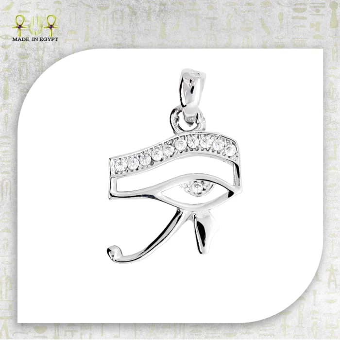 قلادة أنيقة مستوحاة من عين حورس، رمز الحماية والطاقة الإيجابية، مصنوعة من الفضة ومزينة بأحجار زرقاء تمنحك لمسة من السحر المصري القديم.