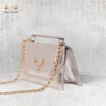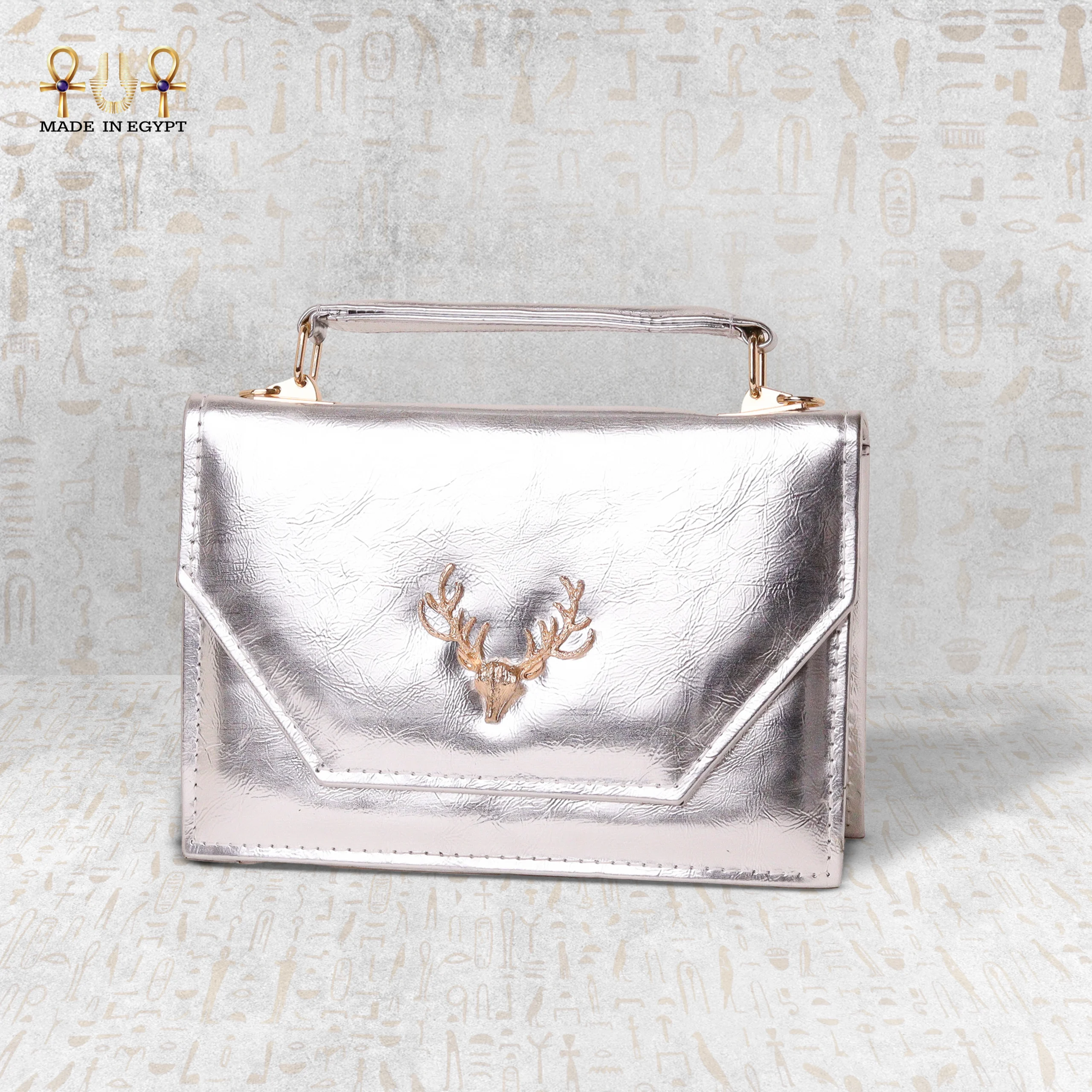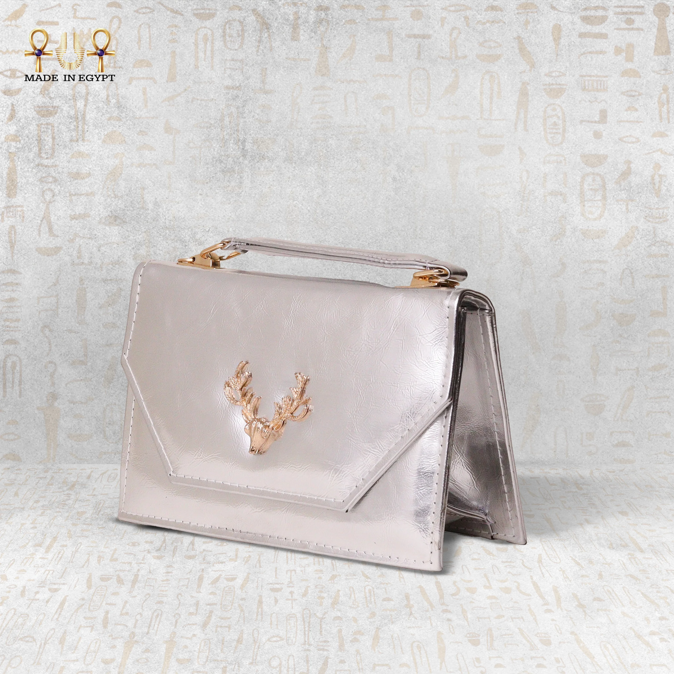 تُصنع **حقيبة فاي لوكس ميتاليك** من **جلد البقر الطبيعي الفاخر** بلون **فضي معدني لامع** يجمع بين الأناقة والعصرية. تتميز **بسلسلة ذهبية** ومقبض علوي وشعار غزال أنيق، لتكون مزيجًا مثاليًا من العملية والفخامة، تناسب الإطلالات النهارية والمسائية.
