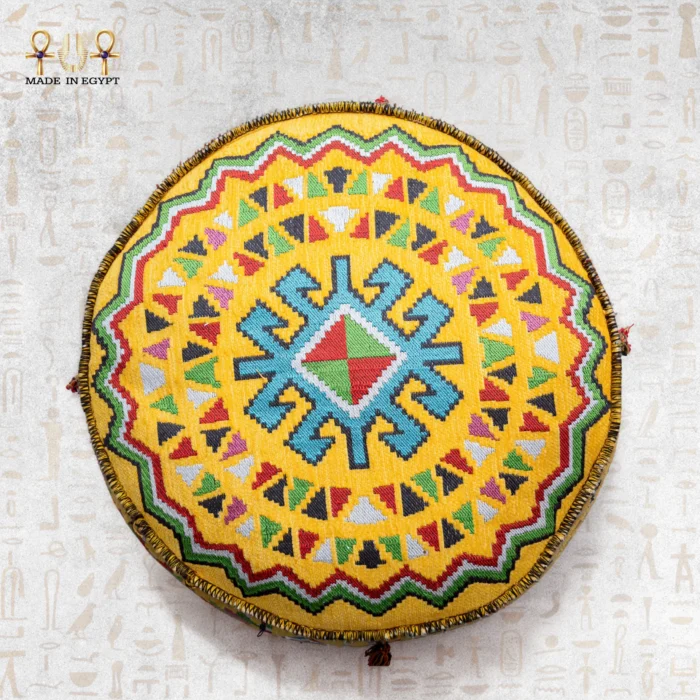 بوف **تلال الكهرمان** هو قطعة فنية مستوحاة من جمال الصحراء المصرية عند الغروب، تجمع بين **ألوان ترابية دافئة** ونقوش قبلية زاهية تعكس روح التراث العربي الأصيل. مصنوع يدويًا من **خيوط قطنية طبيعية** ومحشو بحشوة مريحة ليمنحك تجربة جلوس دافئة وأنيقة.