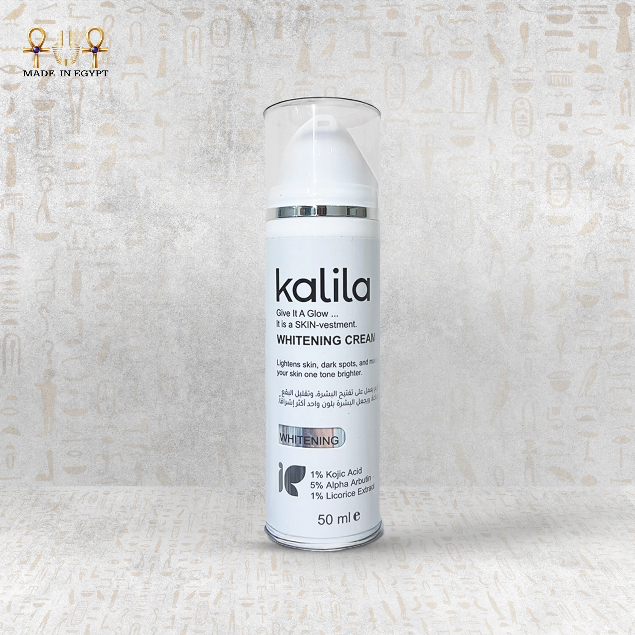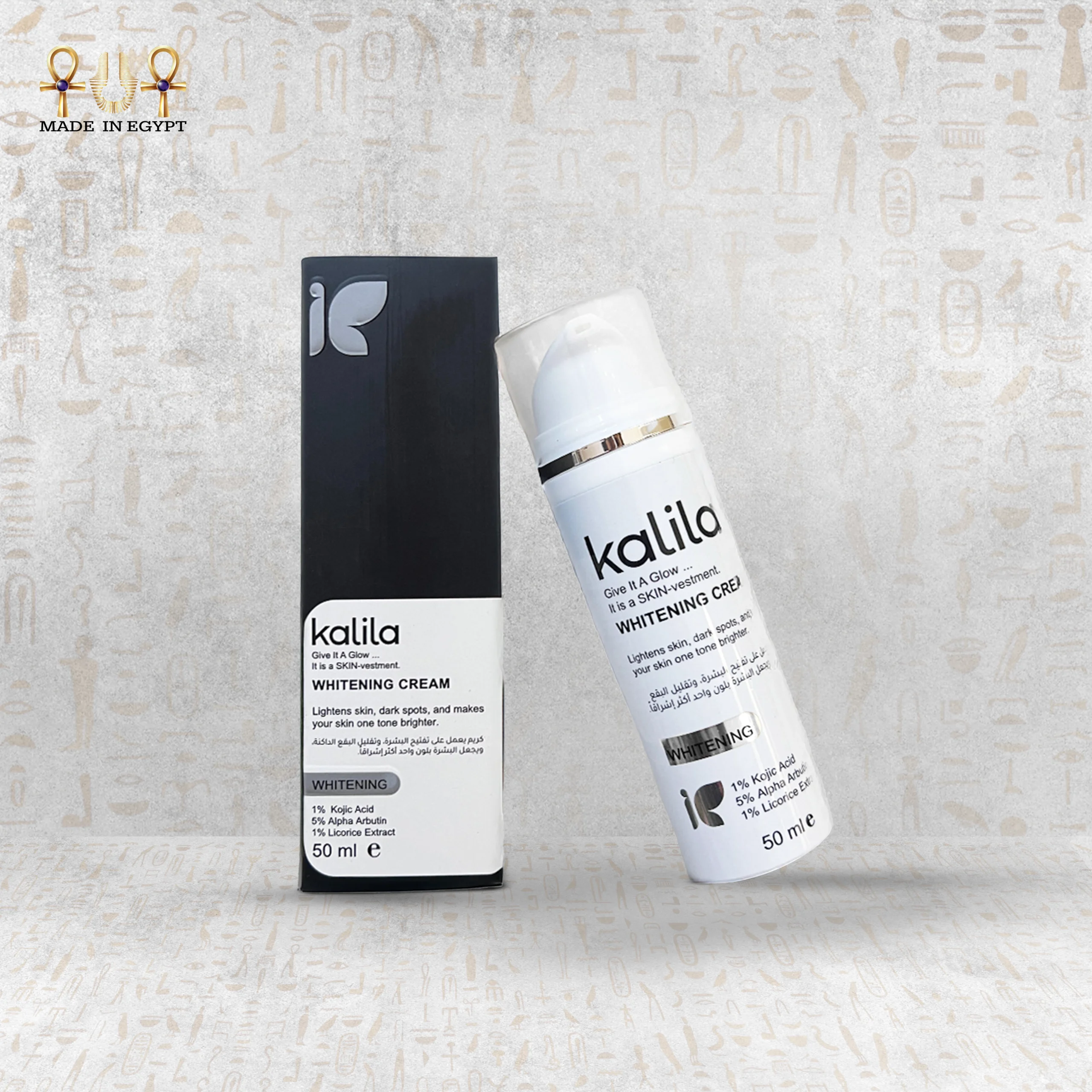 ما يميز **Kalila Whitening Cream** ليس فقط قدرته على تفتيح البشرة، بل أيضًا مساهمته في **توحيد اللون وتحسين الملمس وتعزيز الإشراقة الطبيعية**. ومع الاستخدام المنتظم، ستلاحظين اختفاء تدريجيًا للبقع الداكنة والتصبغات العنيدة، كما ستشعرين بملمس أكثر نعومة وصفاء. هذا الكريم لا يمنحك تفتيحًا مؤقتًا، بل يعمل بعمق لتحسين جودة البشرة من الداخل وإعادة إشراقها من الجذور.
