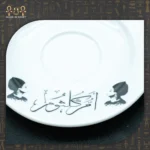 تعليمات العناية: نظف الطقم بماء فاتر وقماش ناعم، وتجنب المواد الكيميائية القاسية للحفاظ على الطباعة العربية وجودة الفنجان والأطباق.
