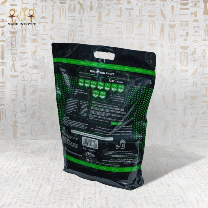 مكمل غذائي لزيادة الوزن والعضلات مع طاقة عالية وطعم شوكولاتة مميز.