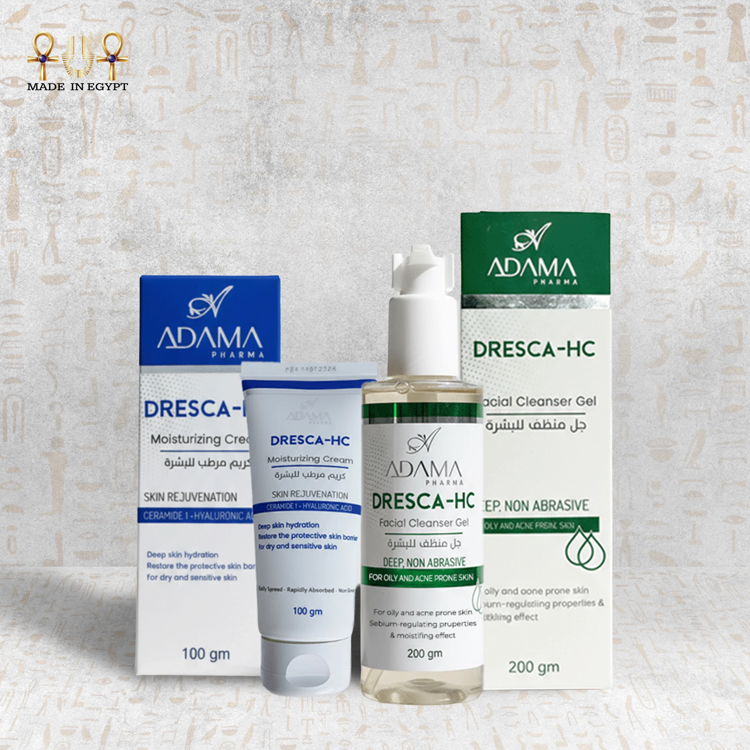 مجموعة دريسكا-إتش سي لتنظيف وترطيب البشرة توفر تنظيفًا عميقًا وترطيبًا فعالًا لبشرة صحية ومتوازنة.