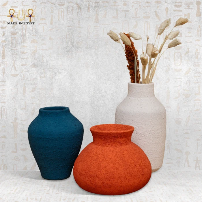 بفضل جودة المواد وثبات الألوان، يُعد طقم ميلا الخيار الأمثل لمحبي الديكور الفريد. سواء كنت ترغب في إضافة لمسة فنية إلى المساحات الهادئة أو إبراز زاوية دافئة بطابع طبيعي، مجموعة ميلا تحقق ذلك. إنها تجمع بين الحرفية المصرية القديمة وروح التصميم العصري، مما يجعلها أكثر من مجرد مجموعة مزهريات؛ بل قطعة فنية تضفي رونقًا على منزلك.