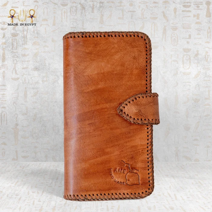 بالإضافة إلى ذلك، يشعر الغلاف الخارجي بالنعومة والمتانة بفضل الجلد الطبيعي. مع مرور الوقت، يكتسب الجلد باتينا غنية تعزز من شخصيته. تبرز الحواف المخيطة يدويًا الجودة الاستثنائية، تكريمًا لإرث مصر الطويل في صناعة الجلود.