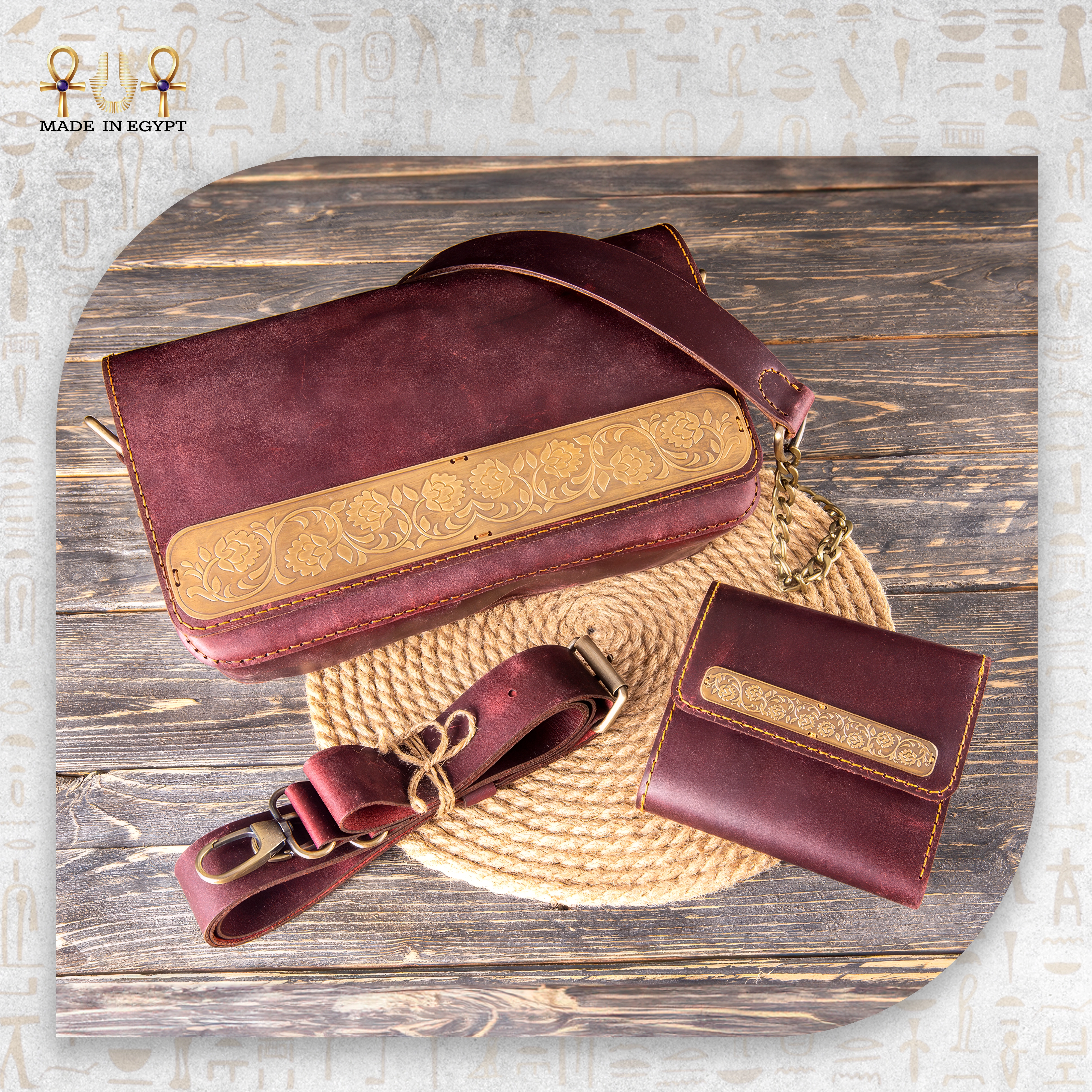 محفظة مارون الإسلامية هي تجسيد للفخامة والحرفية المصرية الأصيلة. تجمع بين الجمال التراثي والوظيفة العصرية في قطعة واحدة. لذلك، فهي مناسبة لمن يحب التفاصيل الهادئة والمنتجات المصنوعة بعناية. صُنعت يدويًا من جلد بقر طبيعي بلمسة معتّقة، وهو جلد معروف بمتانته وملمسه الغني. ومع الوقت، يزداد جماله ويظهر عليه طابع طبيعي يمنح كل قطعة شخصية مختلفة.