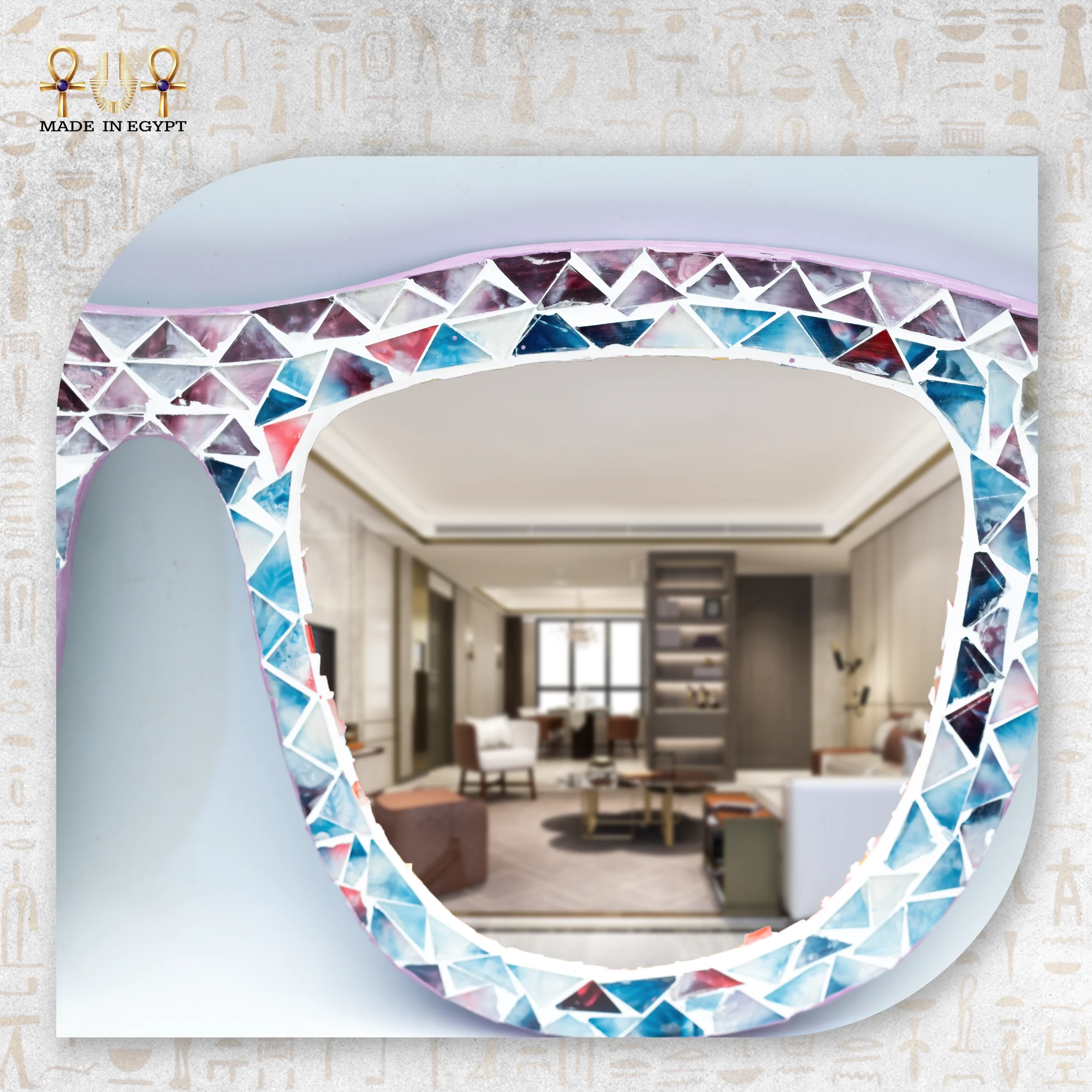 تُعد مرآة ستايل النظارة قطعة ديكور عصرية تجمع بين البساطة والجرأة في تصميم مستوحى من شكل النظارات الشمسية الأنيقة. يعكس هذا التصميم روح الموضة والستايل العصري، مما يجعلها إضافة مثالية لأي مساحة تبحث عن لمسة مختلفة ومميزة.