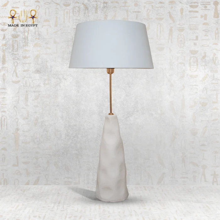 القاعدة مصنوعة يدويًا من الفخار المصري. تمنح المصباح لمسة طبيعية ودافئة. تعكس المهارة الحرفية للأيدي المصرية. تتقن تشكيل الطين. هذا التصميم يجمع بين التراث المصري القديم واللمسات العصرية. يُصنع الفخار بتقنيات تقليدية. تمتد لآلاف السنين. تشبه تلك المستخدمة في صناعة الخزف المصري. الجزء العلوي يتميز بالتصميم الأسطواني. مغطى بقماش أبيض ناعم. يبعث ضوءًا دافئًا. يغمر المكان بأجواء من الهدوء والسكينة. هذا الجمع بين المواد يجعل المصباح عمل فني. يروي قصة الثقافة المصرية. بالإضافة إلى ذلك، يمكن تخصيصه بألوان إضافية. إذا أردت إضافة لمسة شخصية.