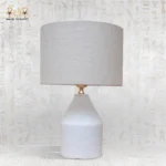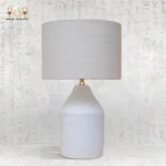 تتميز بقاعدة فخارية بملمس طبيعي وغطاء قماشي ناعم يمنح إضاءة دافئة ومريحة، مما يجعلها مثالية لغرف المعيشة أو النوم لإضافة لمسة راقية وهادئة إلى الديكور.