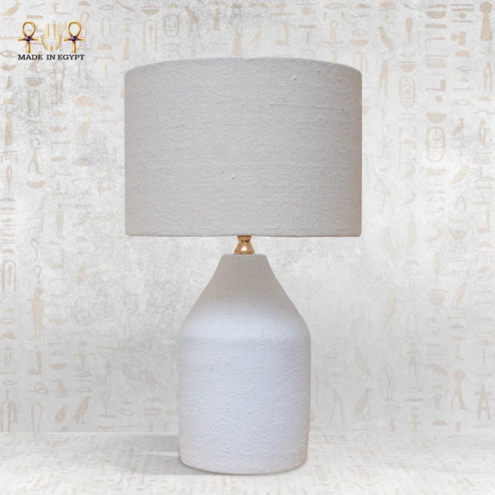 تم تنفيذ القاعدة الفخارية بعناية فائقة على أيدي حرفيين مصريين مهرة يستخدمون الطين الطبيعي ويحولونه إلى قطع فنية متينة ومليئة بالتفاصيل الدقيقة. كل قطعة تُصنع بروح إبداعية تجعلها فريدة وغير مكررة، مما يضيف قيمة فنية لكل منزل. هذا الإتقان في التصنيع اليدوي يجعل المصباح يعبر عن هوية التصميم المصري الممزوج بذوق معاصر.