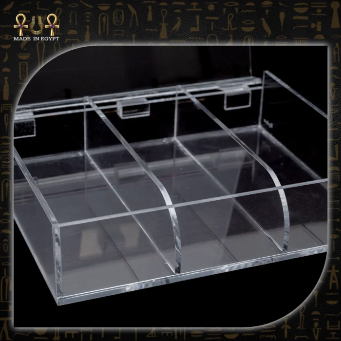 يُجسِّد منظِّم أدوات المائدة الفاخر المصنوع من الأكريليك الشفاف مفهوم الأناقة العملية في أبهى صورها. فهو يجمع بين الجمال العصري والتفاصيل المستوحاة من التراث المصري العريق. يتميز بتصميم راقٍ يضيف لمسة فخمة إلى أي مساحة يوضع بها، سواء في غرفة الطعام، المطبخ، أو حتى ركن الضيافة في غرفة المعيشة.
