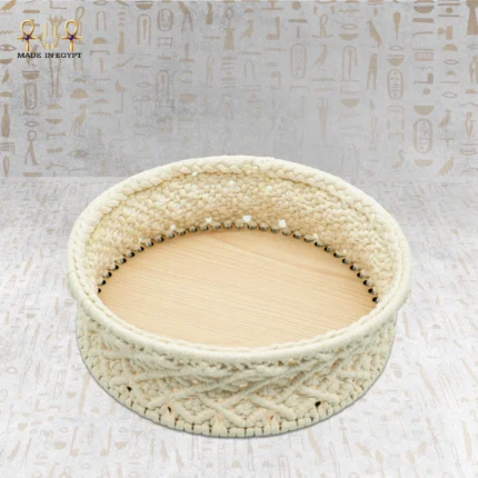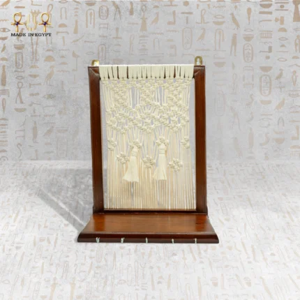 تمنح اليد الخشبية الأنيقة لمسة طبيعية دافئة، مما يسهل تنسيقها مع مختلف الإطلالات سواء الكاجوال أو الكلاسيكية. هذه الشنطة المكرمية اليدوية أكثر من مجرد إكسسوار، فهي قطعة فنية تعكس الحرفية المصرية الأصيلة.