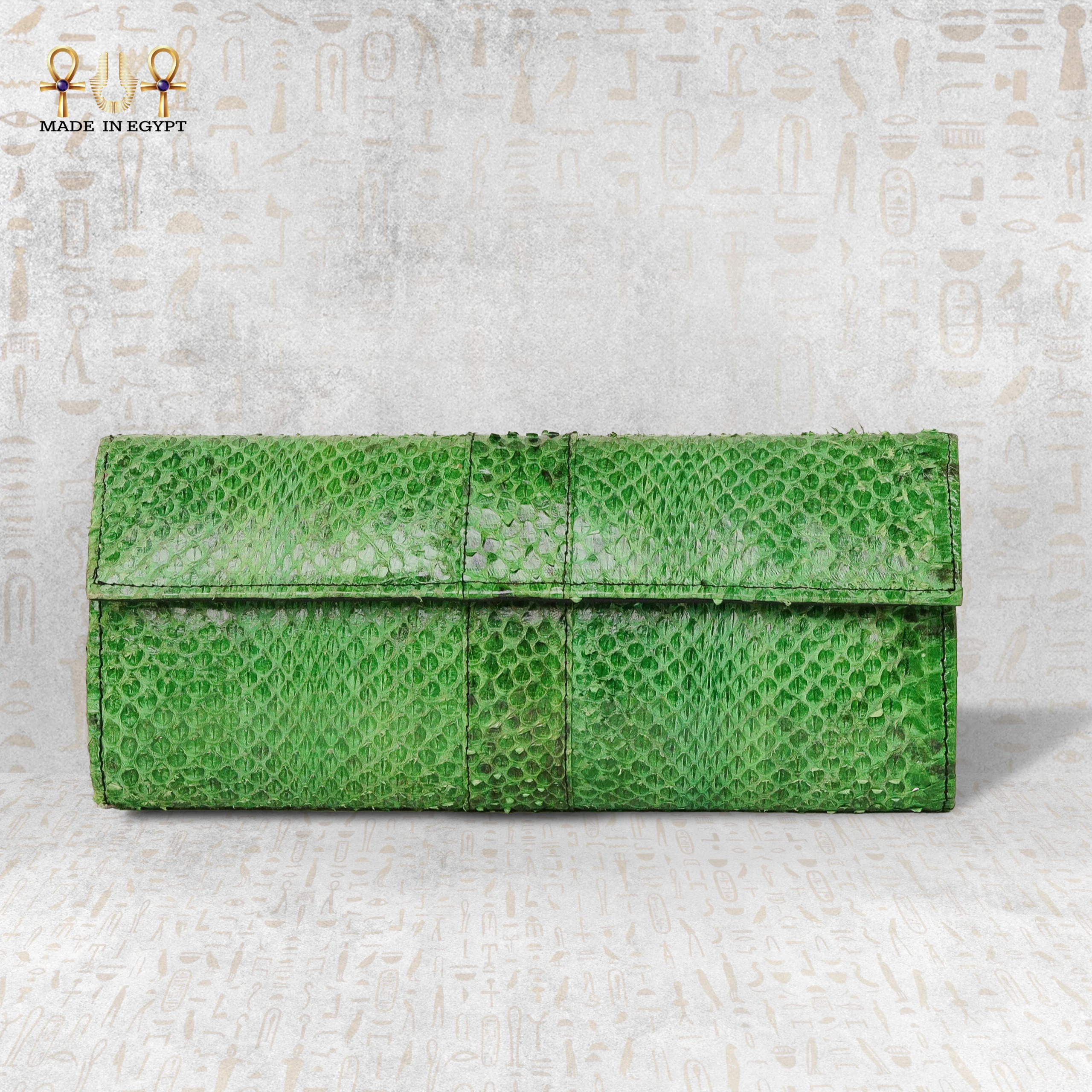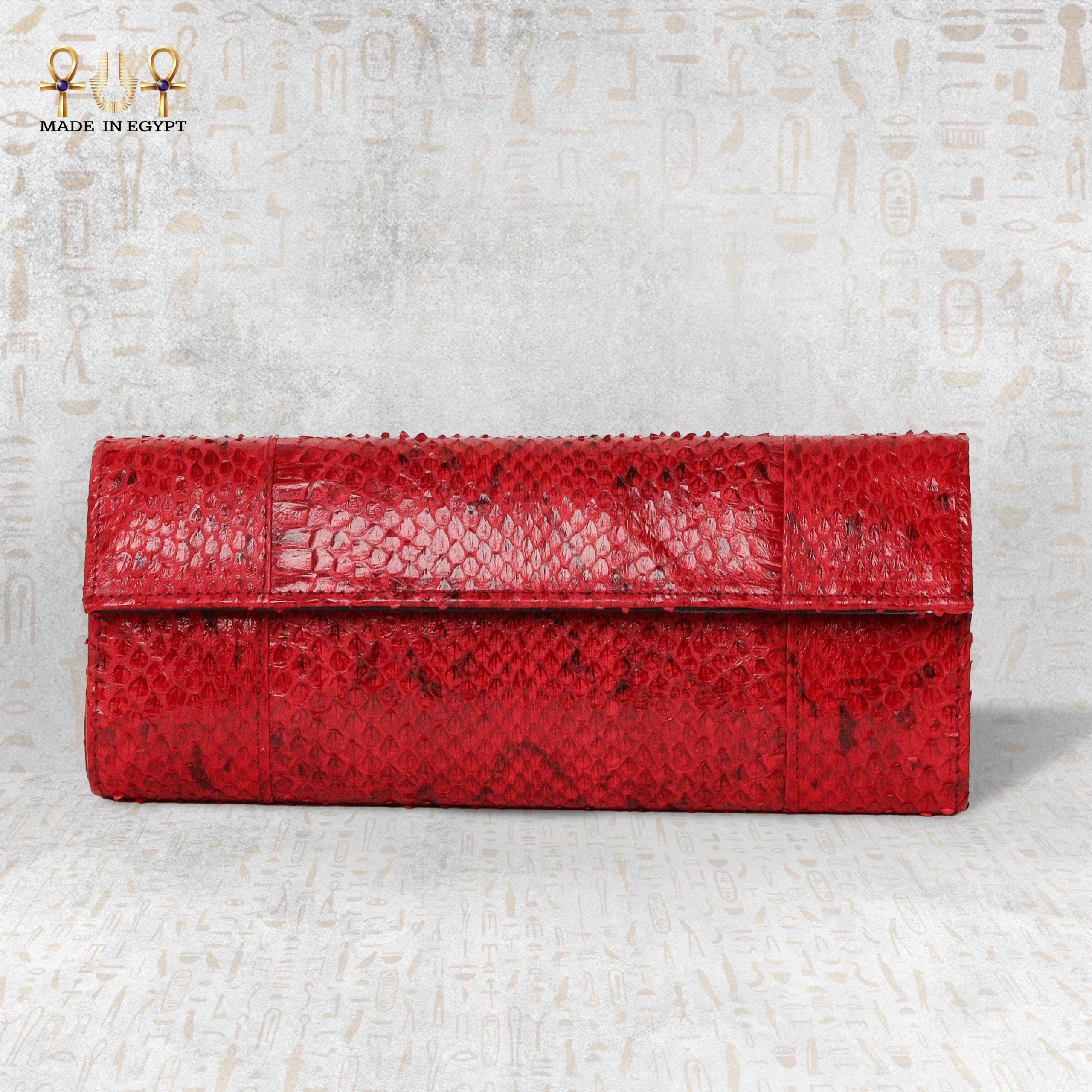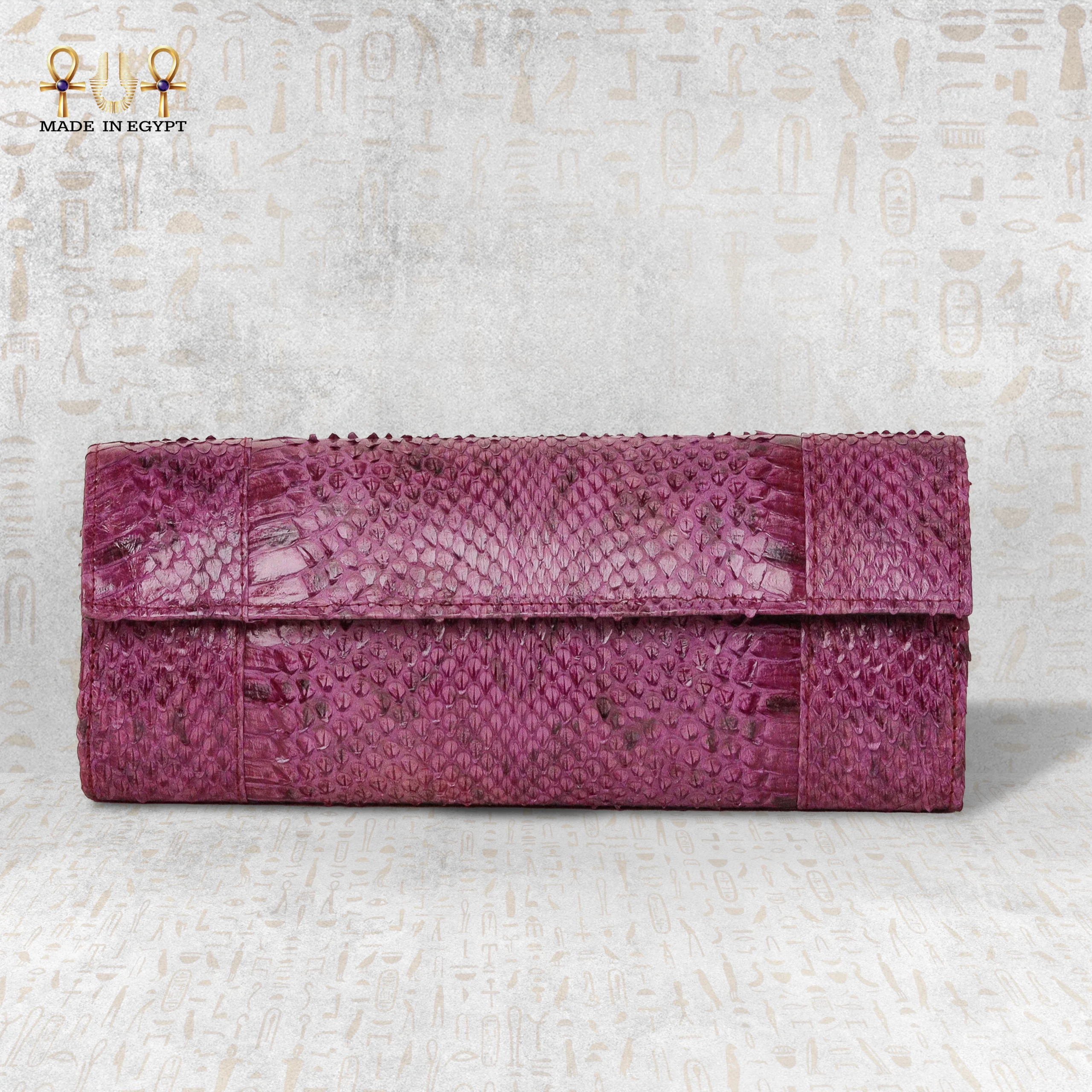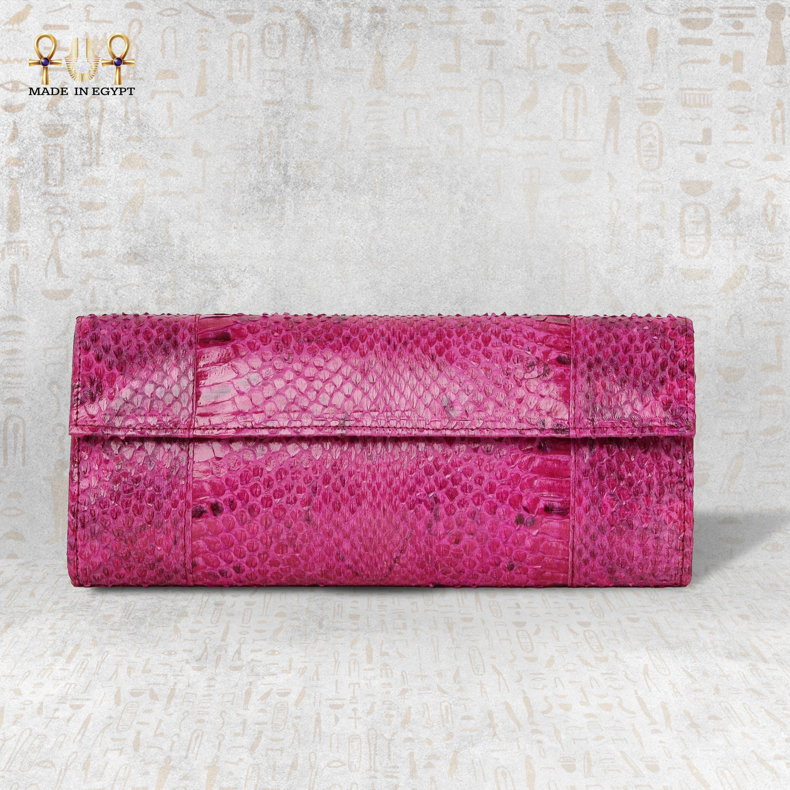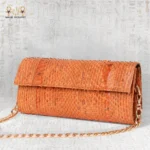 تُعد **حقيبة نورة** من أفخم التصميمات التي تجمع بين القوة والجمال في مزيج فريد من الأناقة المصرية المعاصرة. صُنعت الحقيبة من **جلد الكوبرا الطبيعي الخشن**، مما يمنحها ملمسًا فاخرًا ولمعانًا فريدًا يعكس فخامة المادة الأصلية. تصميمها المستطيل البسيط يوحي بالثقة والرقي، بينما تضيف التفاصيل الدقيقة مثل السلسلة الذهبية المقاومة للصدأ لمسة فنية راقية تجمع بين الفخامة والعملية في الوقت نفسه.