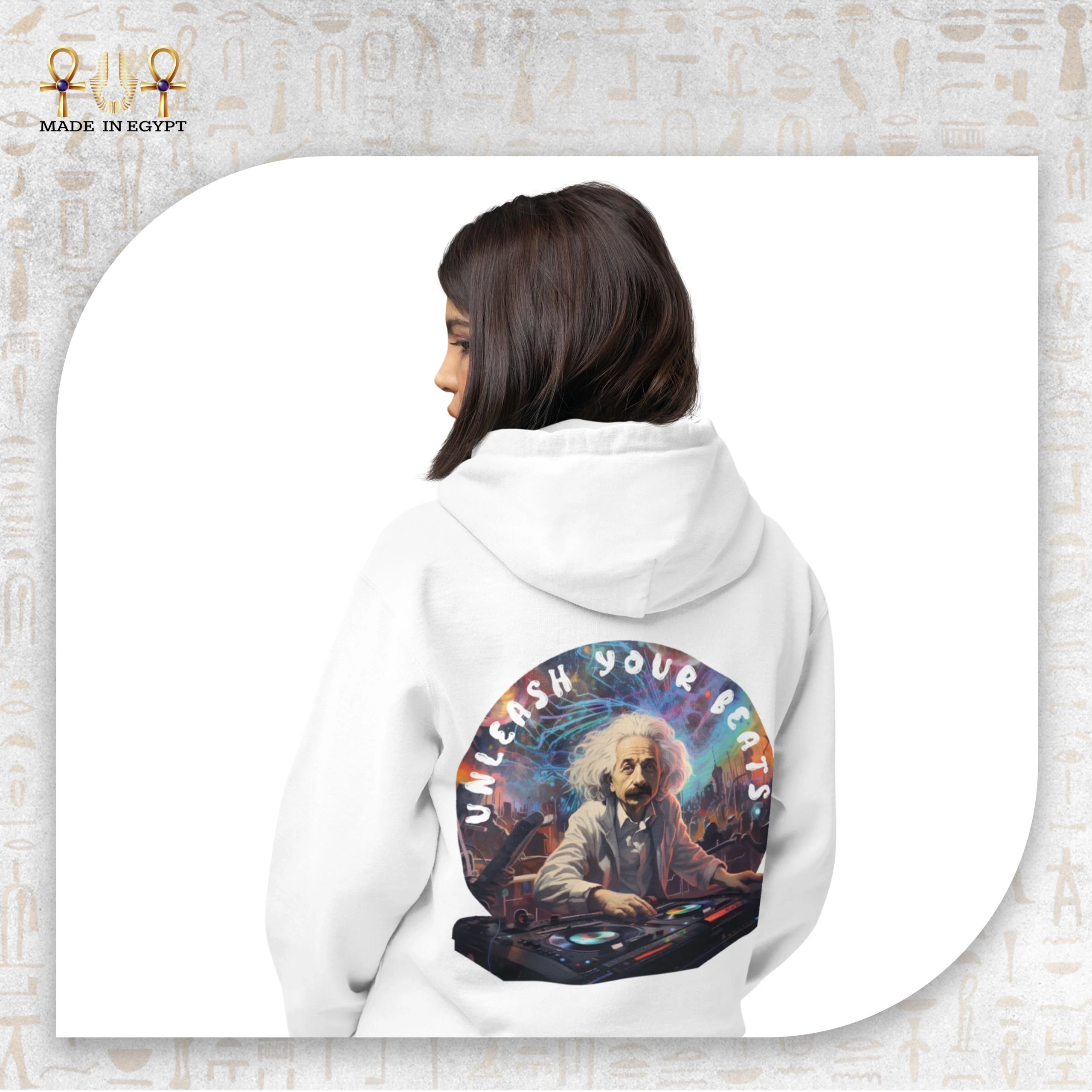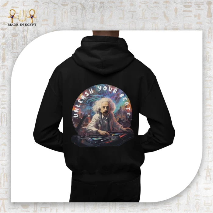 هودي أنليش يور بيتس هو تعبير بصري جريء عن إطلاق الطاقات الكامنة والإبداع غير المحدود. التصميم الخلفي لهذا الهودي الفريد يعرض مشهدًا فنيًا محمّلًا بالمعاني — عالم عبقري محاط بإضاءات نابضة وموجات صوتية مرئية، وكأنه يمزج معادلات الفيزياء بإيقاعات الموسيقى.