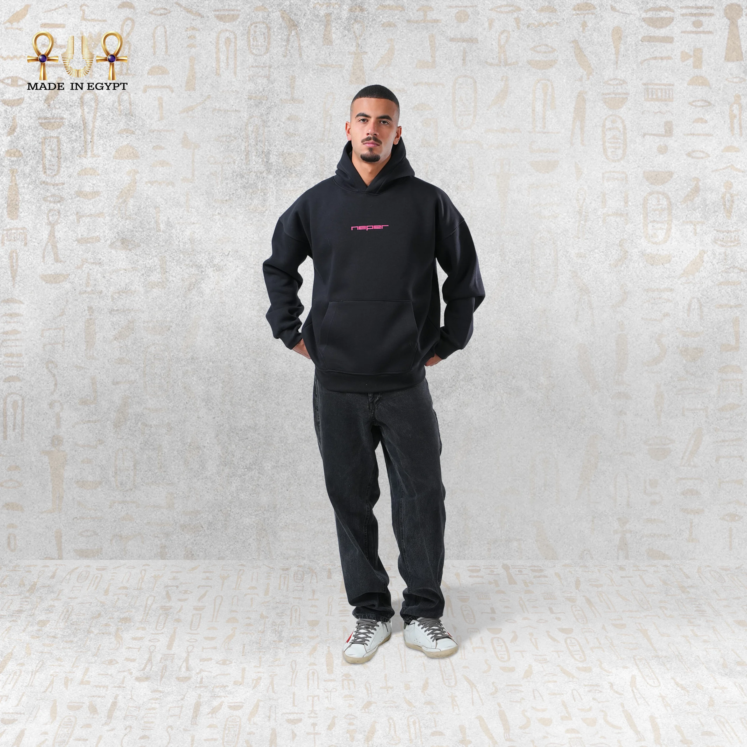 يُجسّد هودي بوستاج فرعون من Neper رؤية فنية جريئة تجمع بين التراث المصري العريق وروح الشارع الحديثة. يجمع التصميم بين الفخر بالهوية المصرية والأناقة العصرية، ليصبح اختيارًا مثاليًا لكل من يريد إطلالة تجمع بين الأصالة والابتكار.