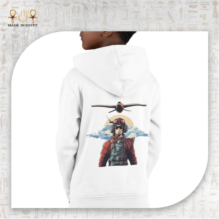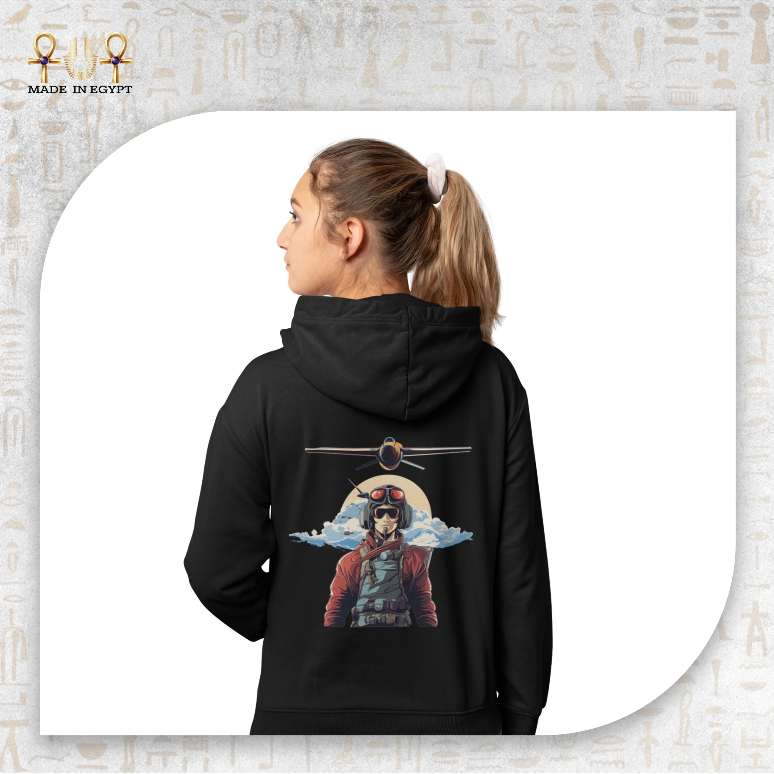 هودي طيّار الغيوم من Made in Egypt هو أكثر من مجرد قطعة ملابس، إنه تعبير عن الحلم، الجرأة، والانطلاق. يتميز هذا التصميم الفني بصورة جذابة لطيّار يحمل ثقة السماء فوق كتفيه، يقف شامخًا أمام طائرة تحلق وسط الغيوم المضيئة بأشعة الشمس — في مشهد يترجم فكرة أن السماء ليست نهاية الطريق، بل بدايته.