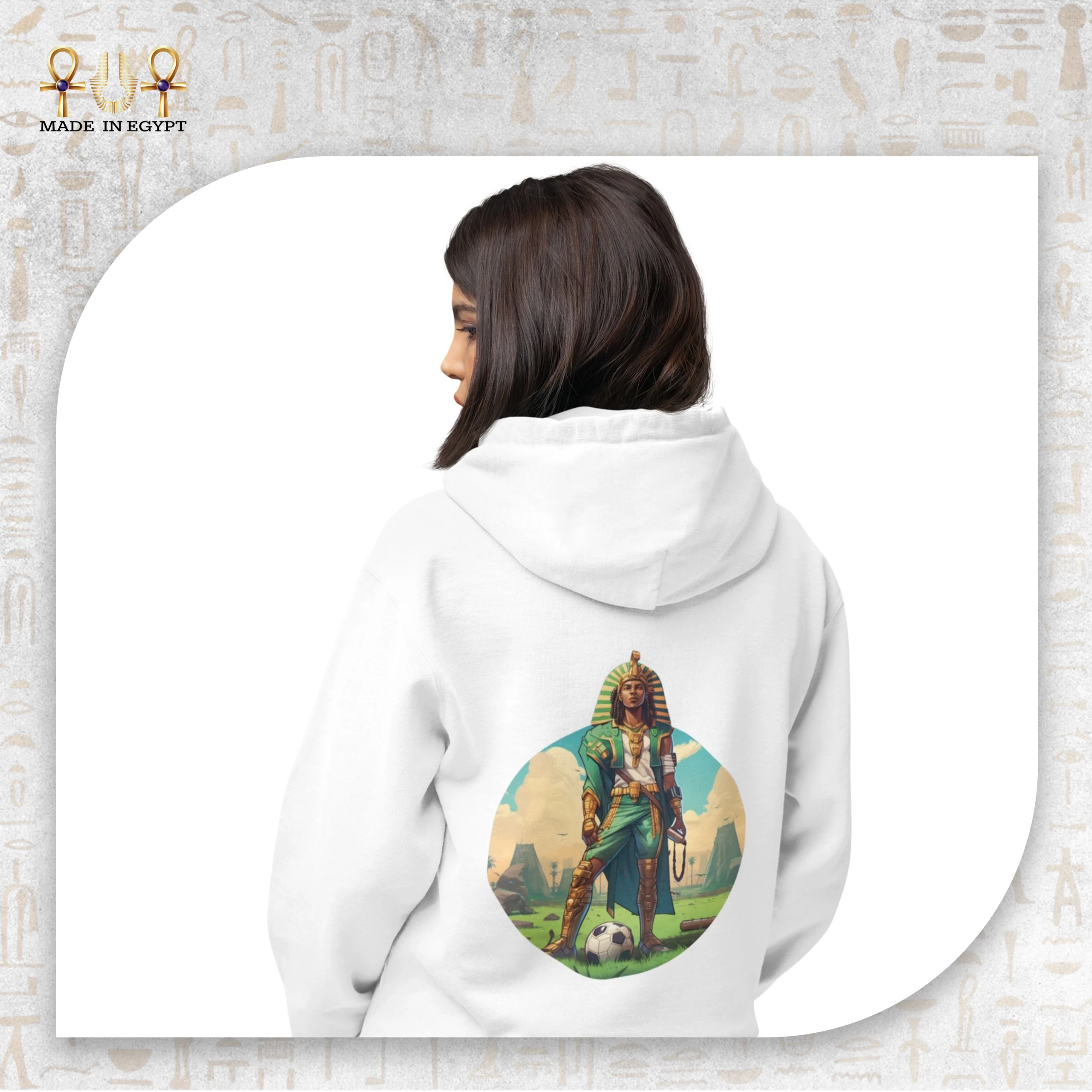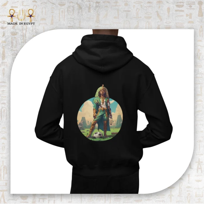 هودي كينج أوف ذا فيلد يأخذك في رحلة تجمع بين شموخ التاريخ وروح المنافسة الحديثة. هذا التصميم الفريد يصوّر فرعونًا شامخًا يقف بثقة على أرض الملعب، مرتديًا درعًا ملكيًا مستوحى من حضارة مصر العريقة، بينما ترتكز كرة القدم عند قدميه، في مشهد يجمع بين الفخر، القوة، والطموح الرياضي.