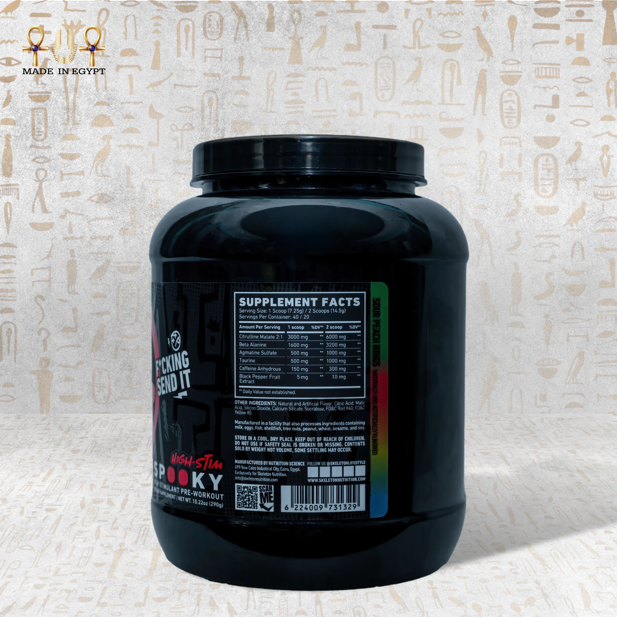 يحتوي Spooky على 6 جرام من السيترولين، 3 جرام من البيتا-ألانين، و 200 ملجم من الكافيين في كل جرعة. هذا المزيج المتكامل يعزز ضخ الدم إلى العضلات، ويزيد من قدرتك على التحمل، ويحفز عقلك لأداء التمارين بشكل مكثف. سواء كنت تتدرب لرفع الأثقال، أو لإجراء تمارين الكارديو، فإن هذا المكمل يقدم لك الطاقة التي تحتاجها لتتجاوز حدودك.