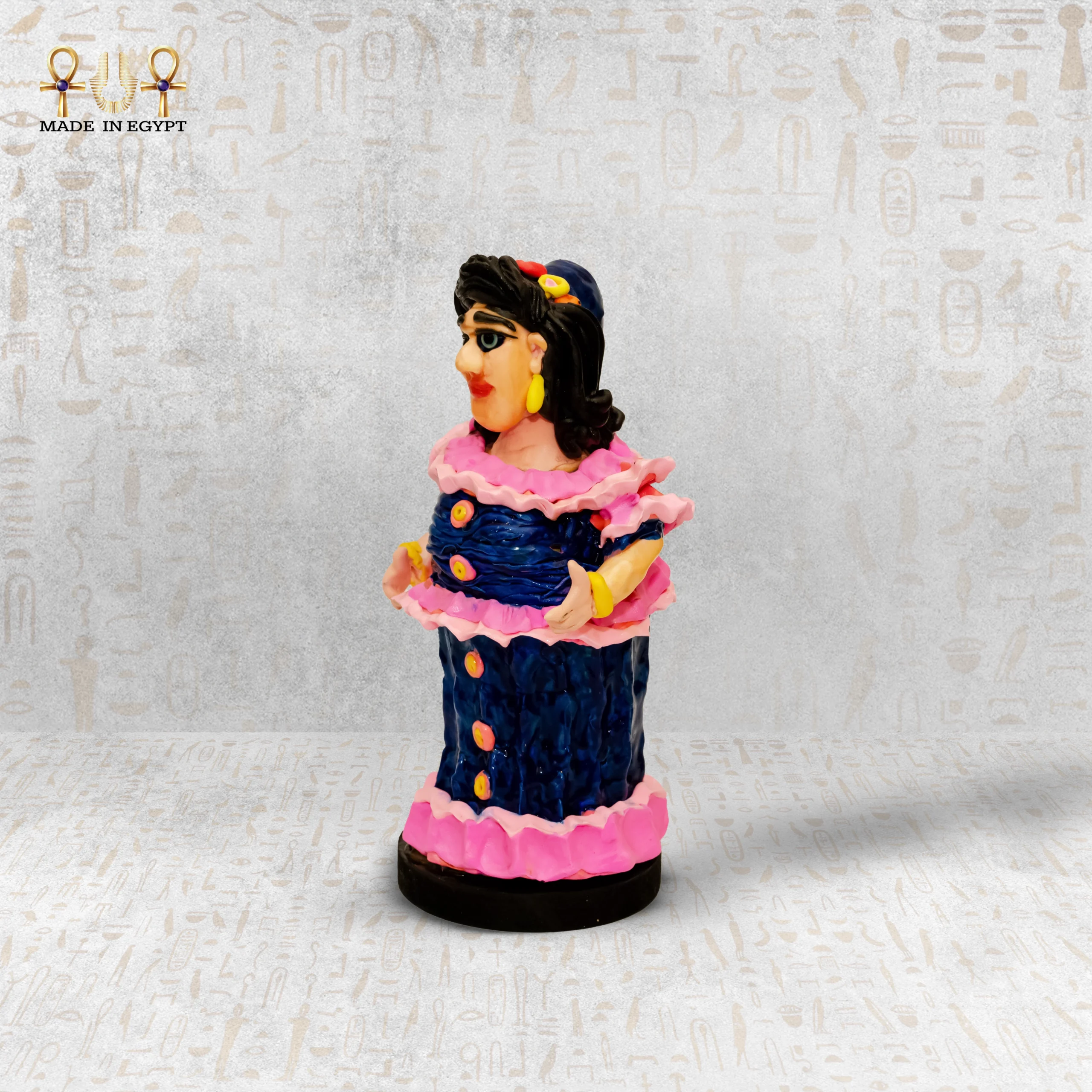 A handcrafted figurine portraying Bahiga Lady with a joyful and confident character.