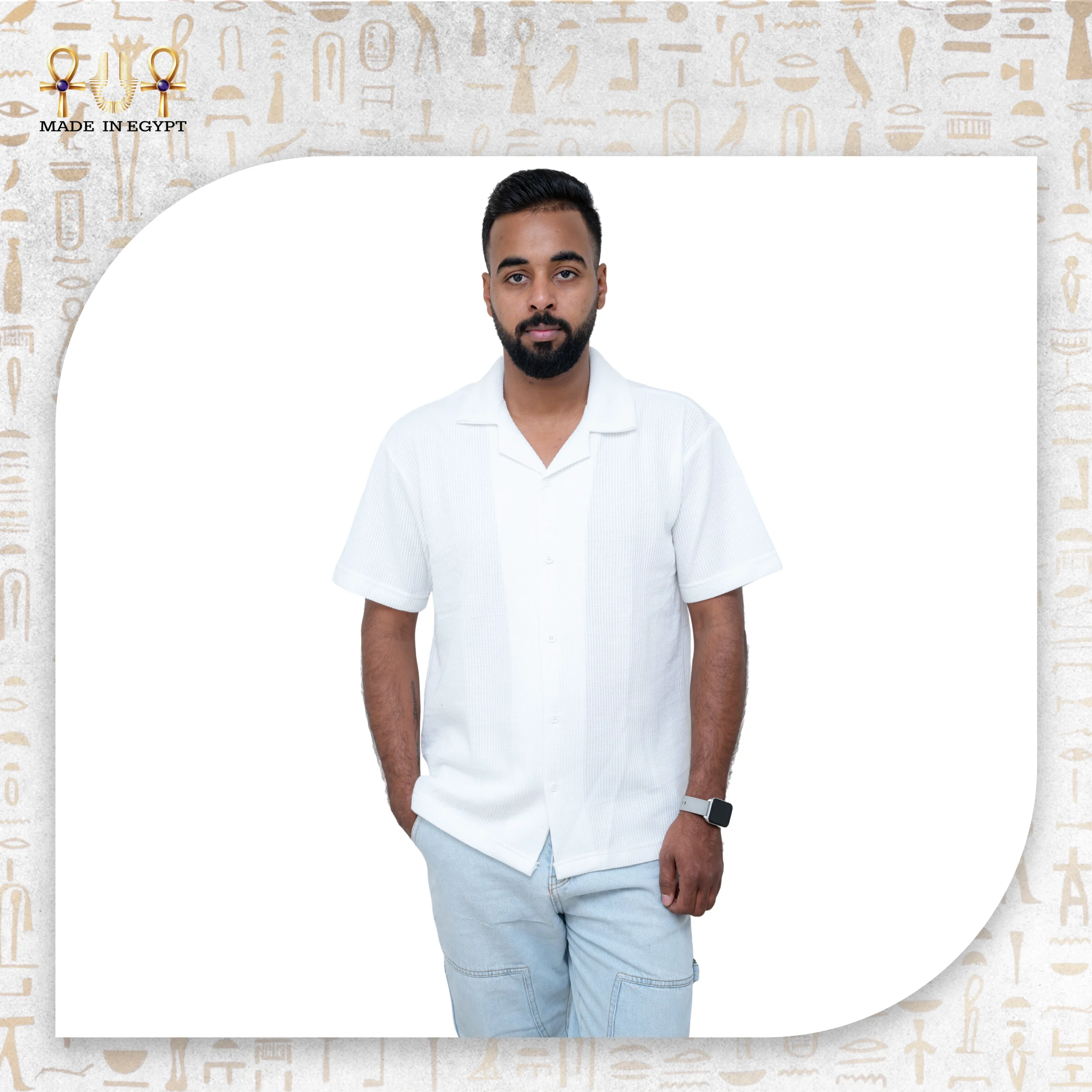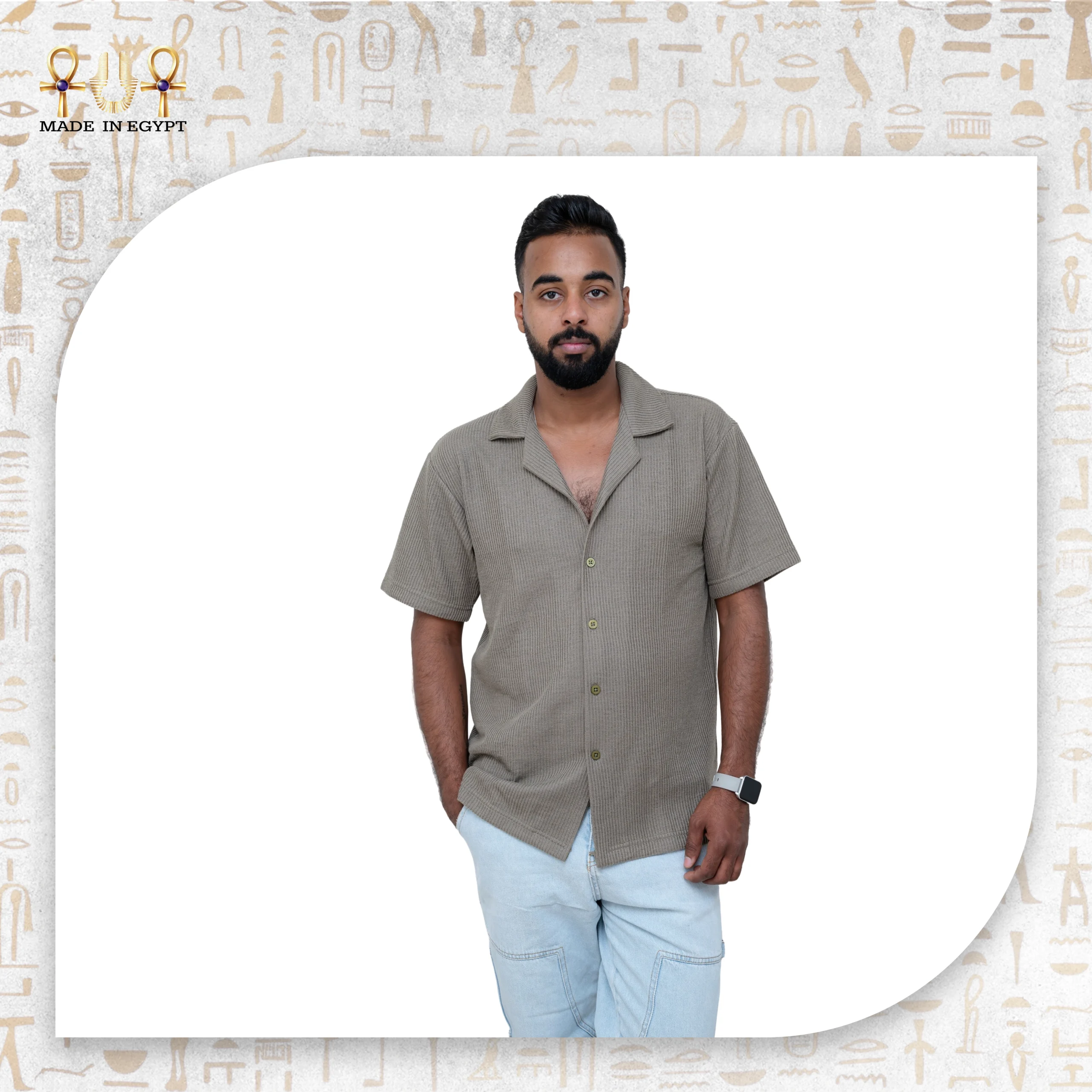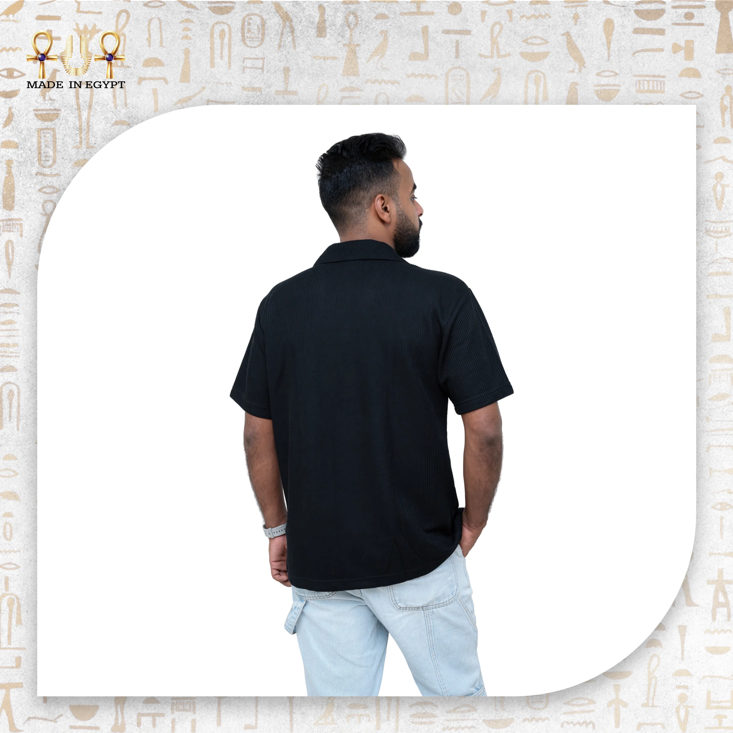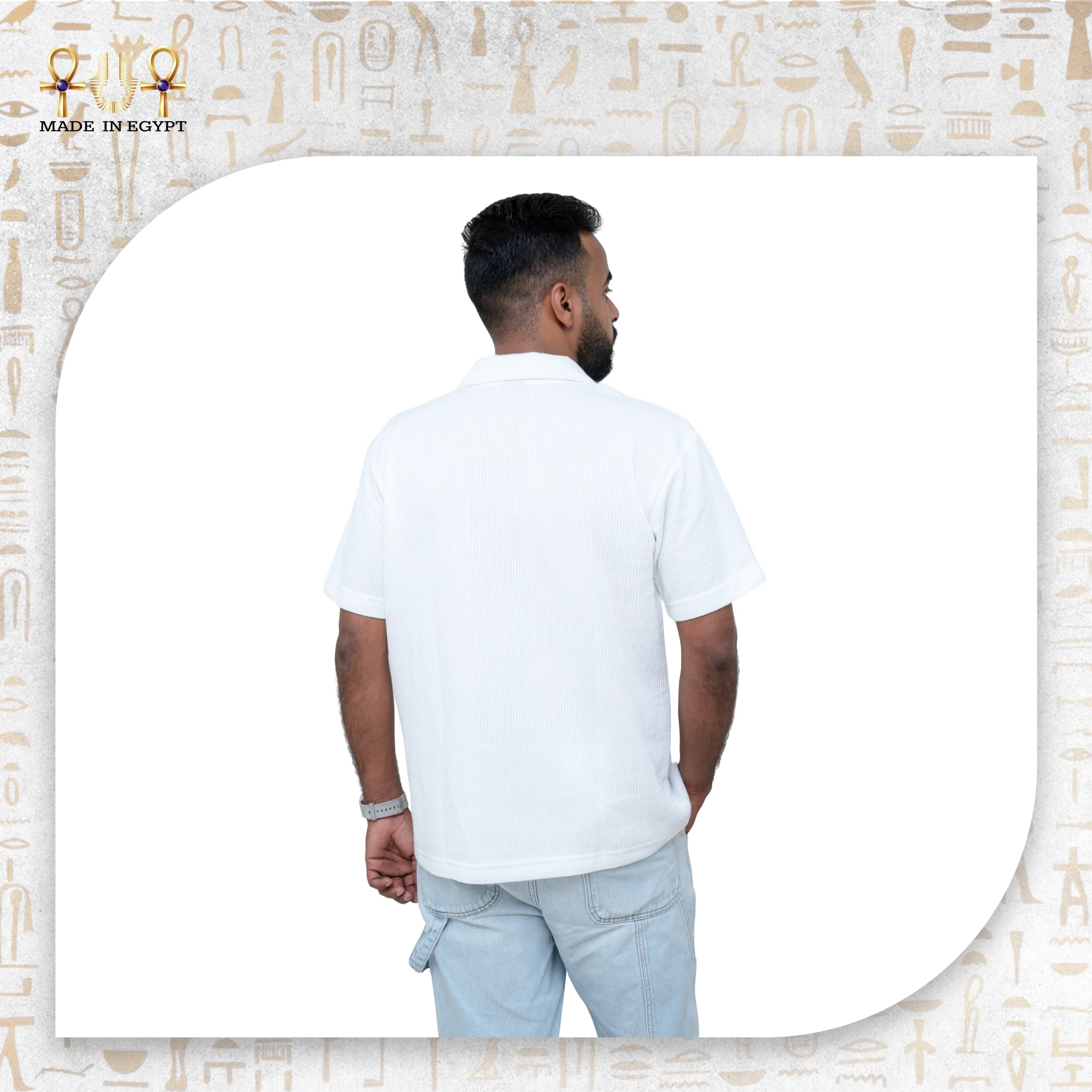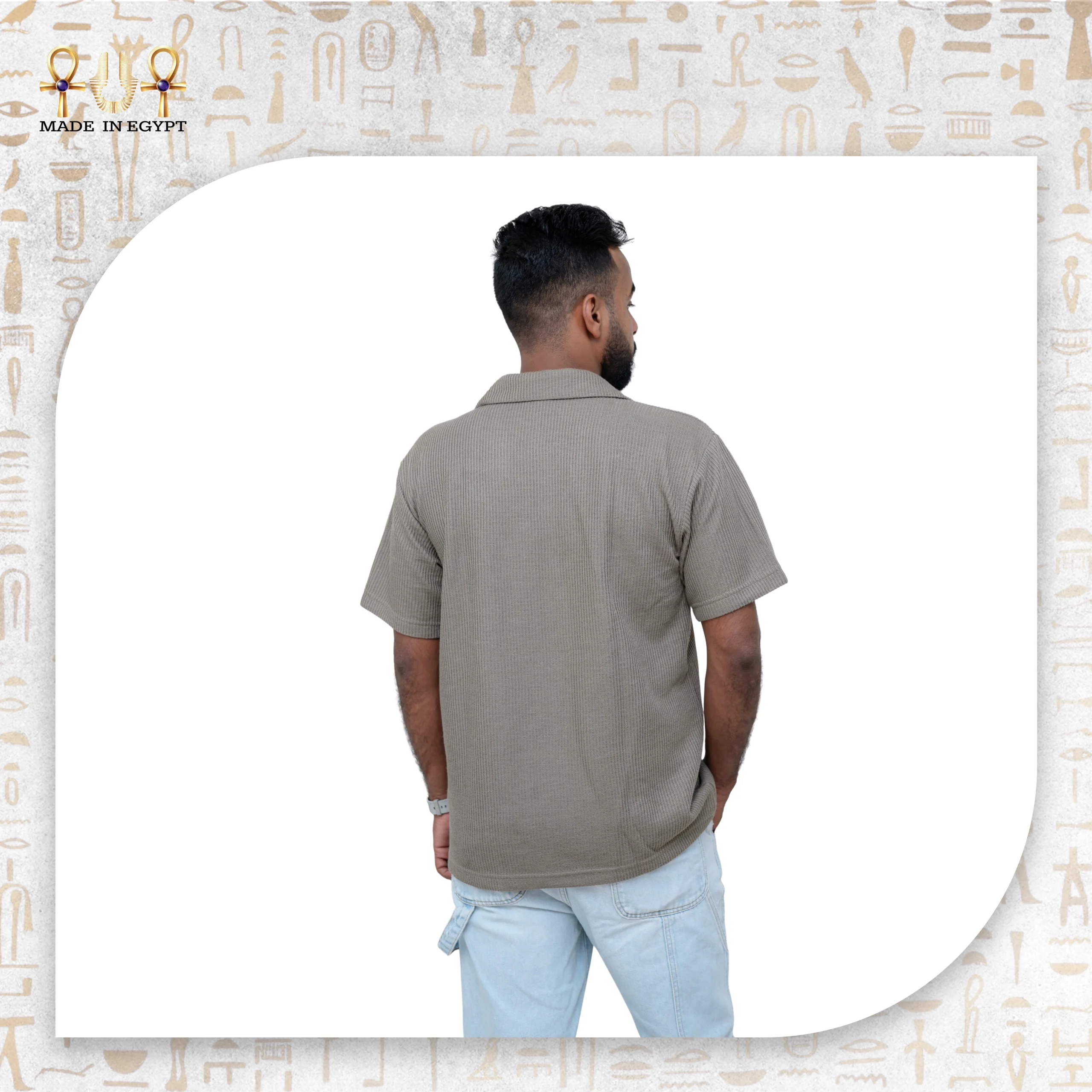 يحمل القميص شعار “Made in Egypt” الذي يعبّر عن فخر الصناعة المحلية والتزامها بتقديم منتج أنيق ومتين يناسب ذوق الرجل العصري.