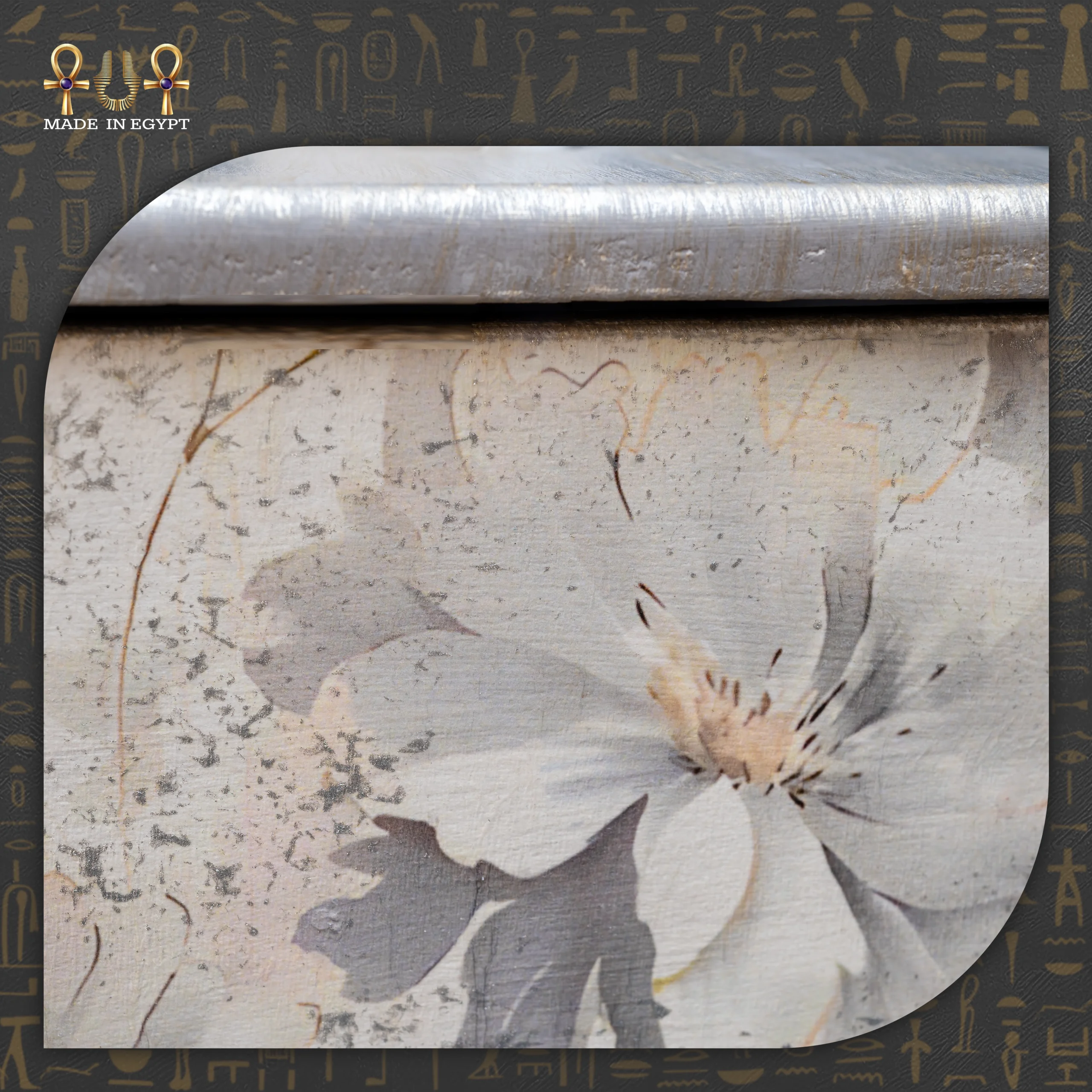 The exterior comes in a refined silver grey finish decorated with soft floral patterns. The delicate flower details add a romantic and elegant touch, enhancing both modern and classic interiors. Whether placed on a coffee table, console, bedside table, or office desk, it elevates the overall décor beautifully.
