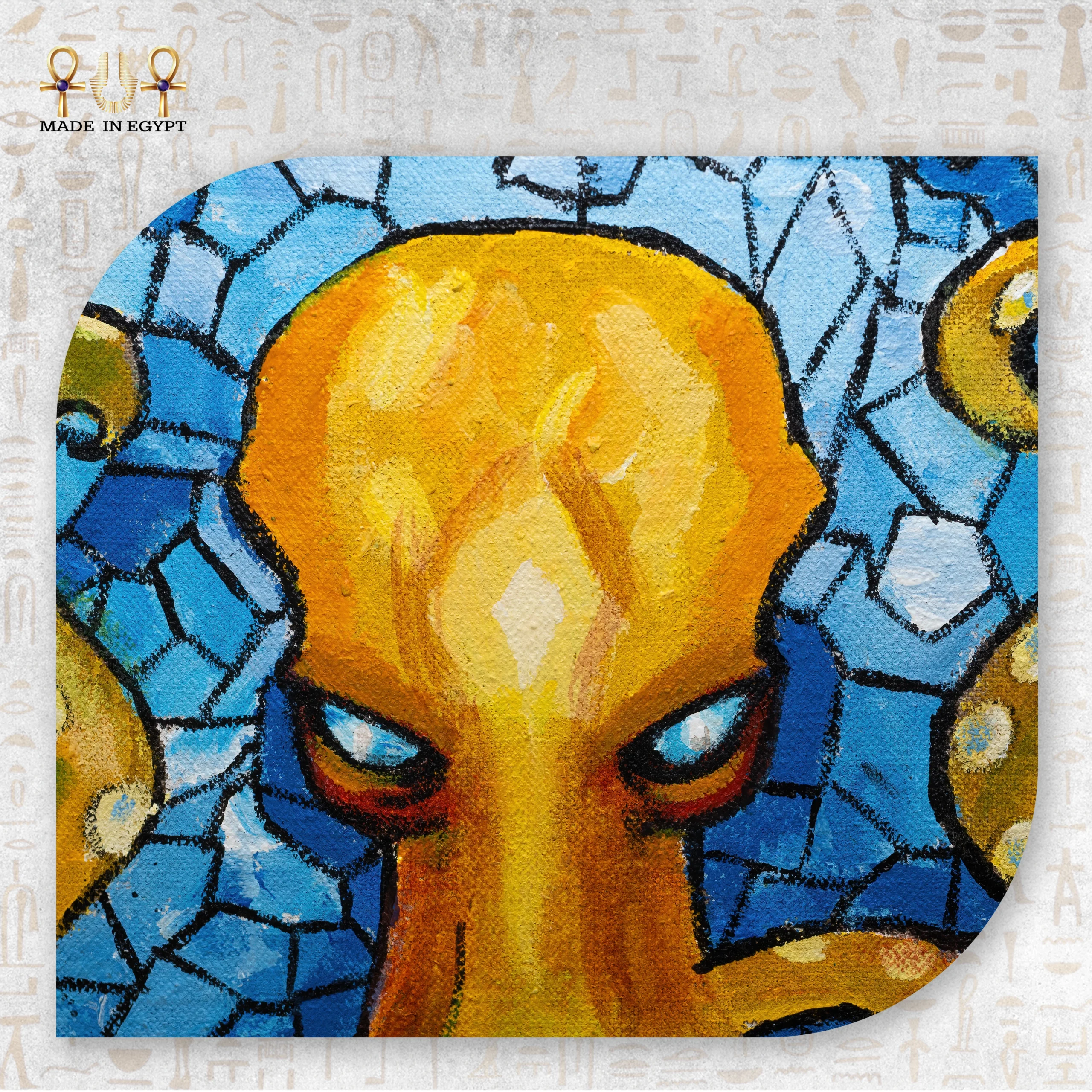 The artwork features rich colors and expressive details that bring the octopus to life. A vibrant ocean-inspired background adds depth and movement. As a result, the design feels dynamic and eye-catching. It suits art lovers and anyone who enjoys distinctive fashion pieces.