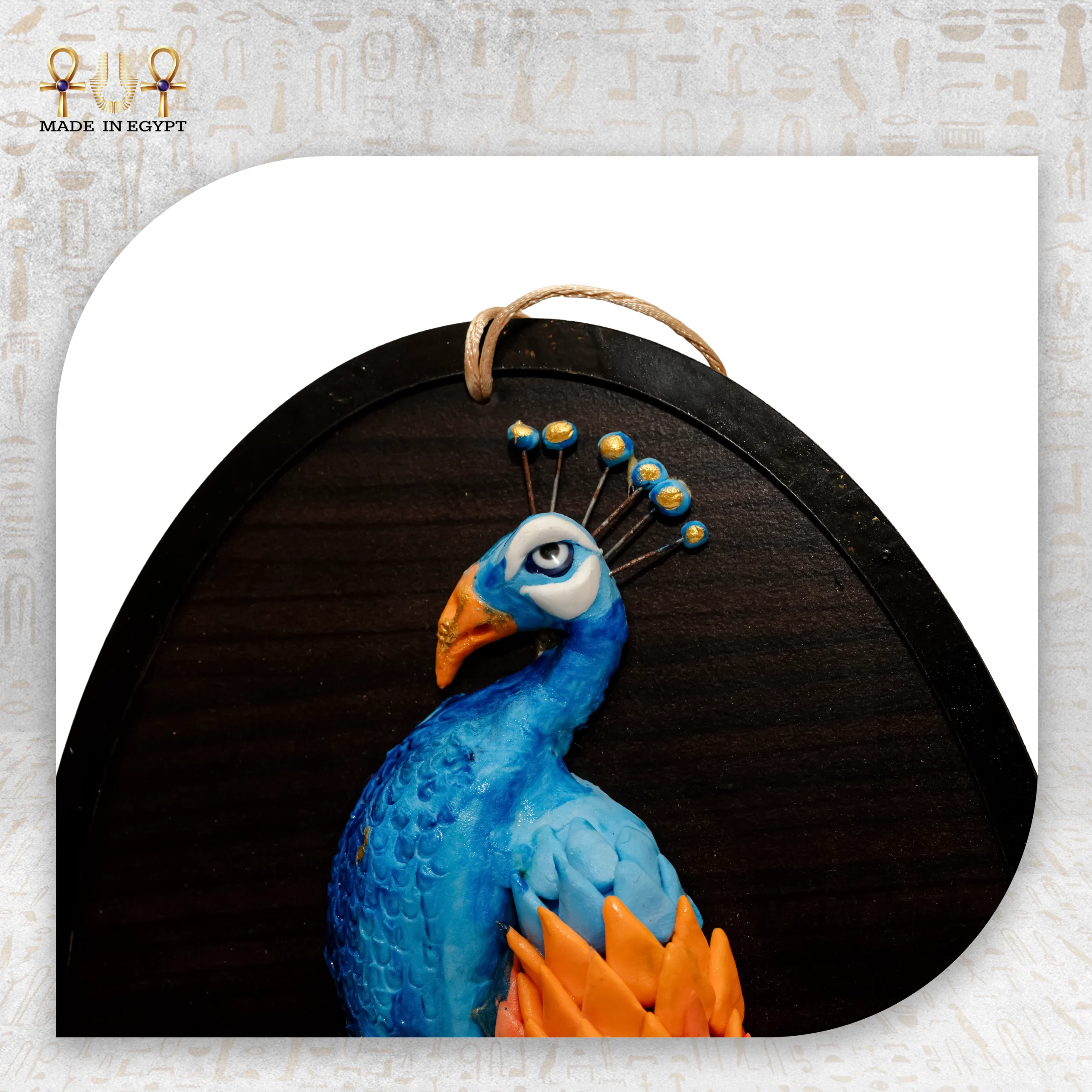 Moreover, the artist handcrafts each panel using a combination of clay, foam, and paper-based dough. As a result, the piece stays lightweight yet durable. In addition, the artist sculpts every feather with careful attention to texture and movement. Therefore, vibrant shades of blue, orange, and subtle golden accents create a striking visual contrast, while the hand-painted finish ensures that each piece is truly one of a kind.