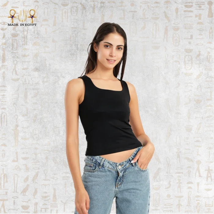 The standout feature of this design is its square neckline. It adds a contemporary edge and enhances the neckline with a subtle feminine charm. The sleeveless cut keeps you cool and free to move, making it perfect for warm days or as a chic layering piece under jackets and blazers.