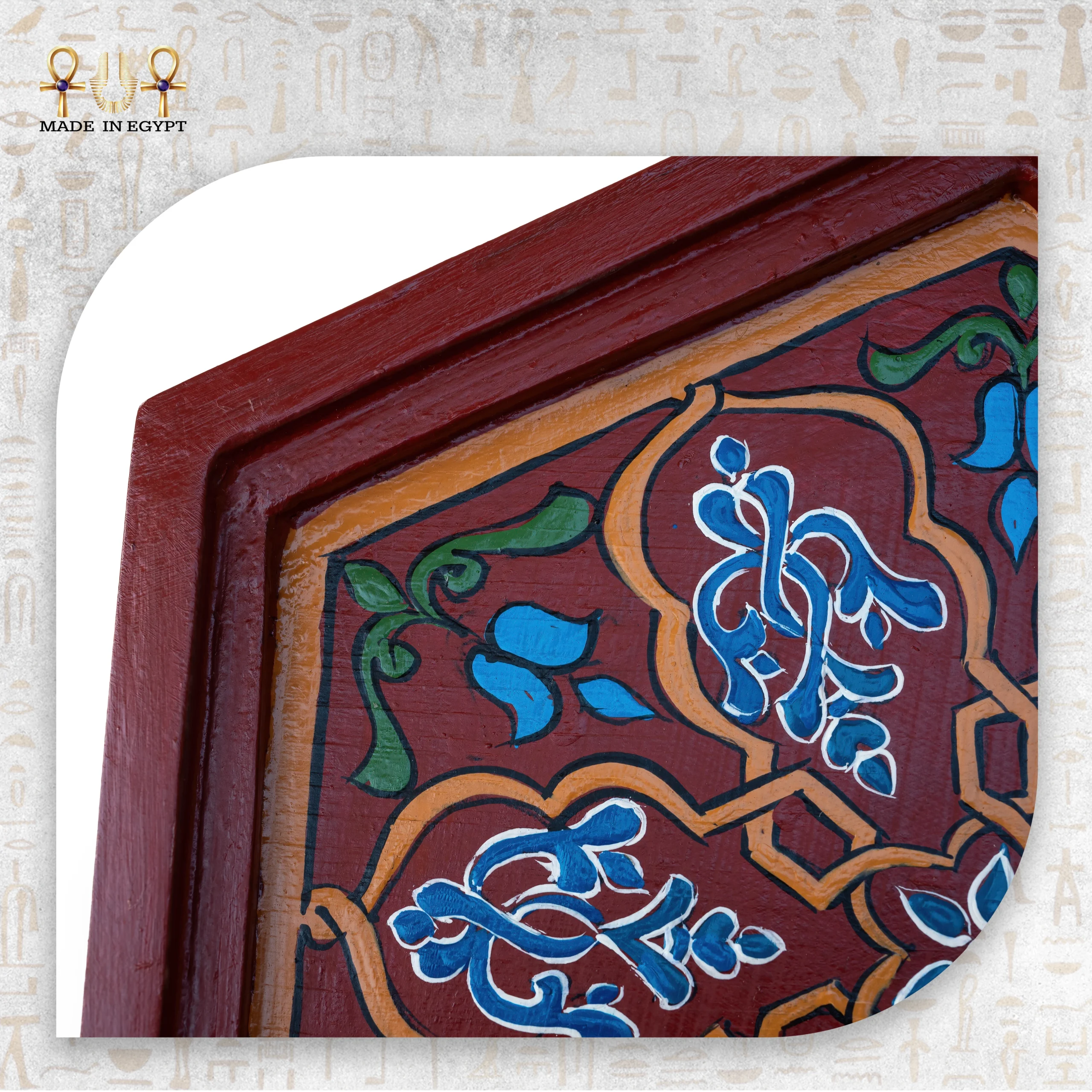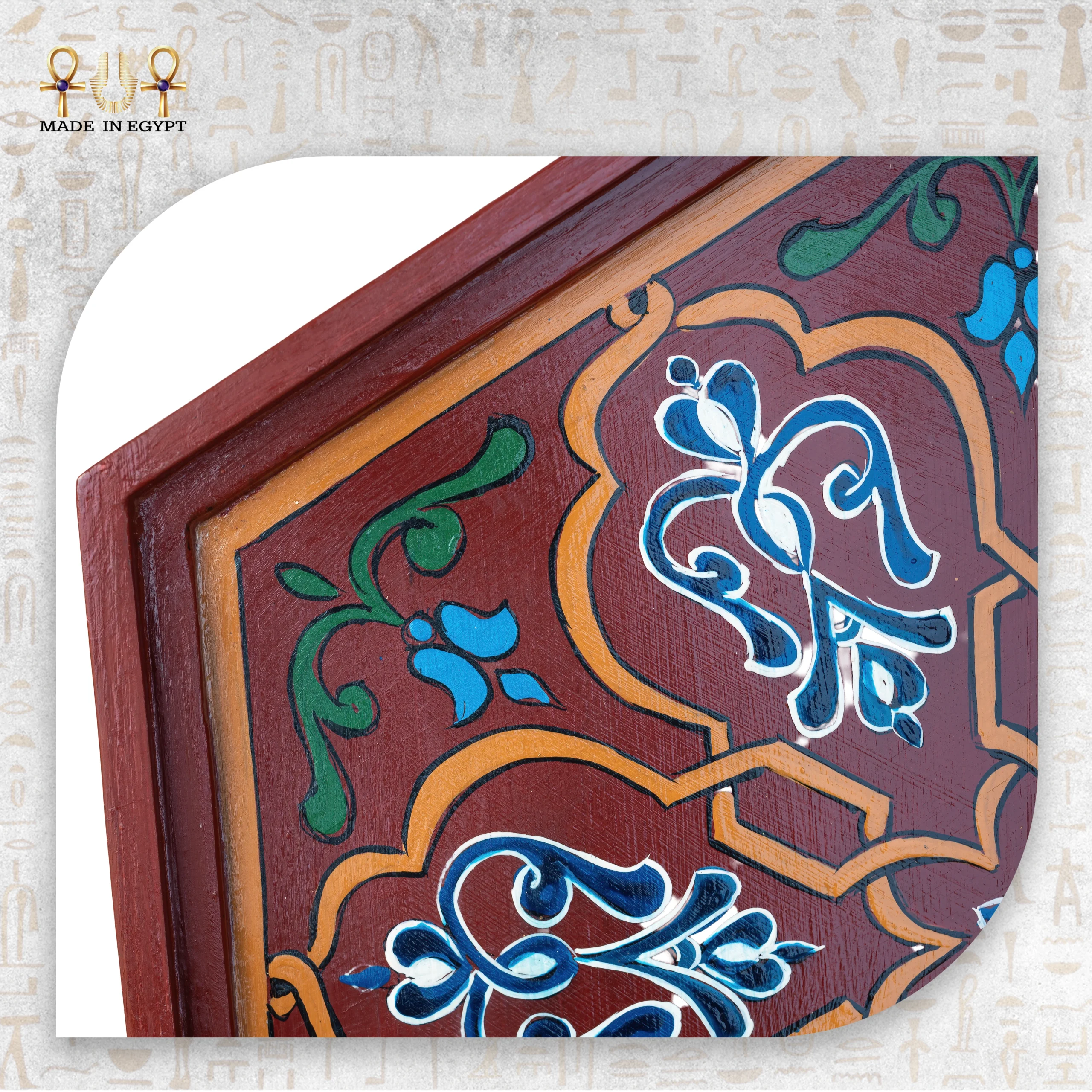 A handcrafted wooden décor piece adorned with calm Eastern patterns that reflect heritage and authenticity. Its balanced design and warm tones add a sense of serenity and depth to any space, offering an elegant artistic touch inspired by the past.