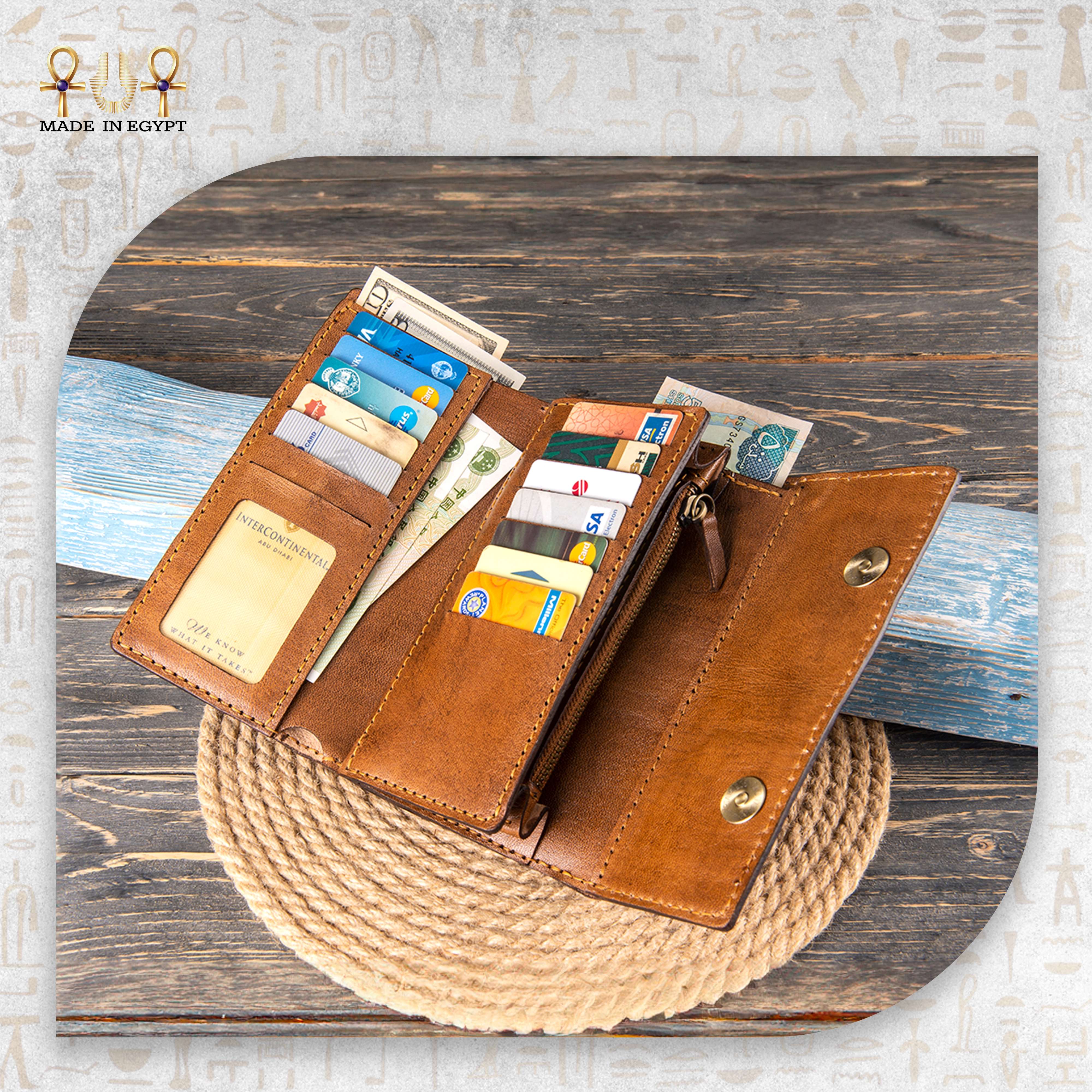 محفظة حريمي فاخرة من جلد طبيعي مدبوغ نباتيًا 100%.