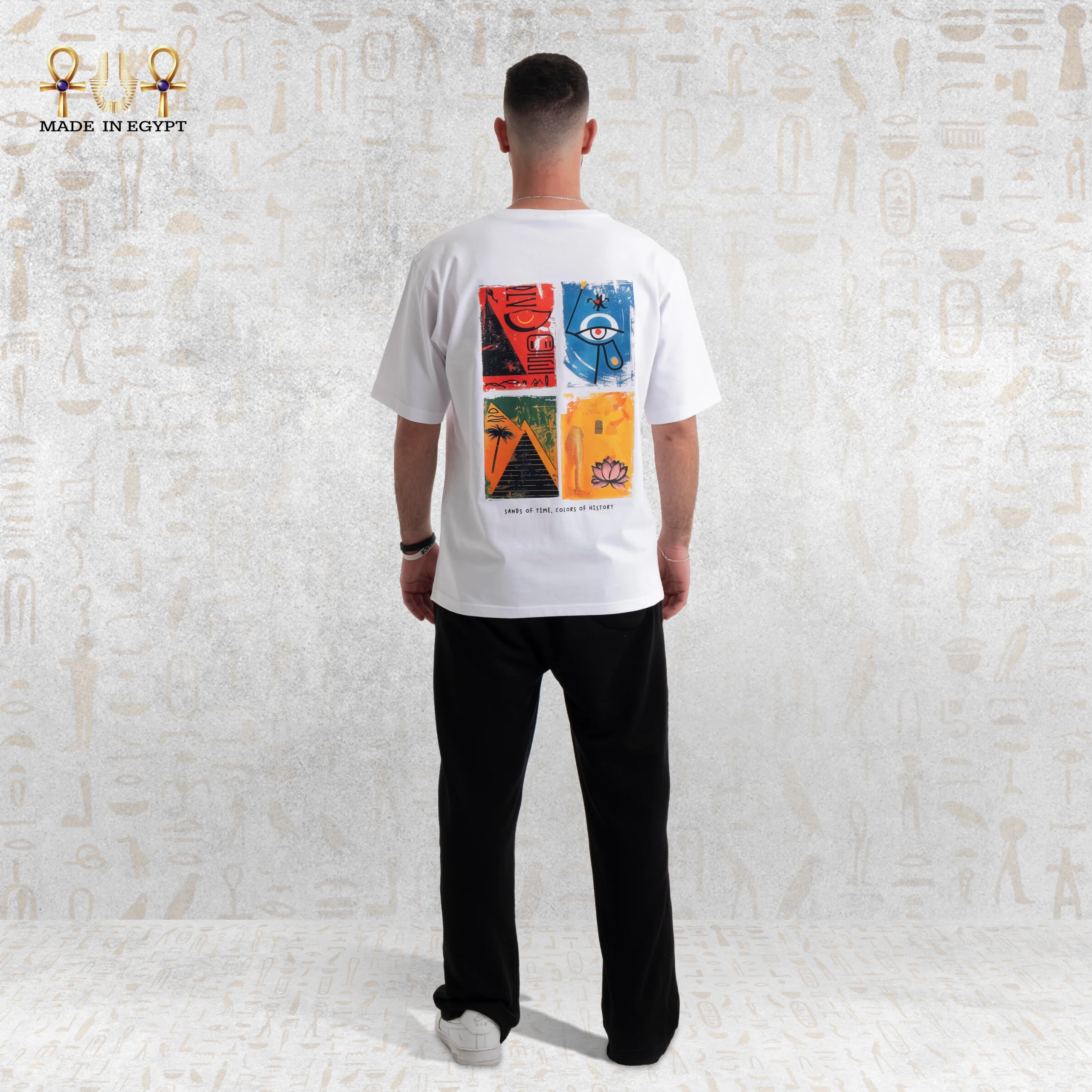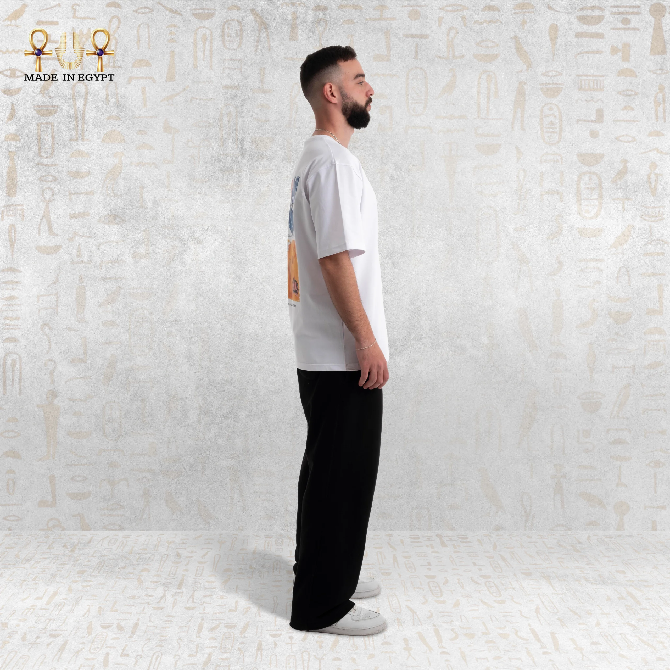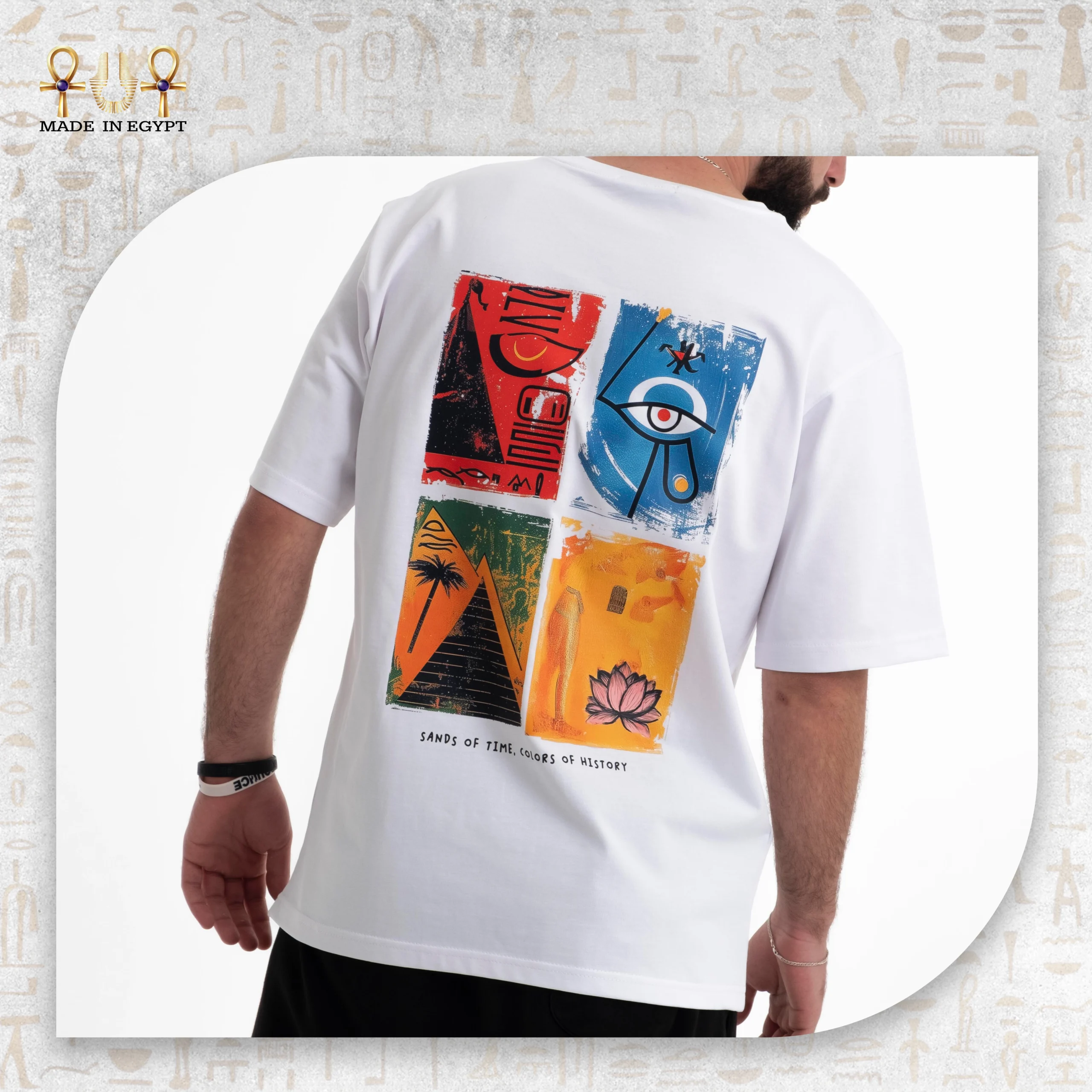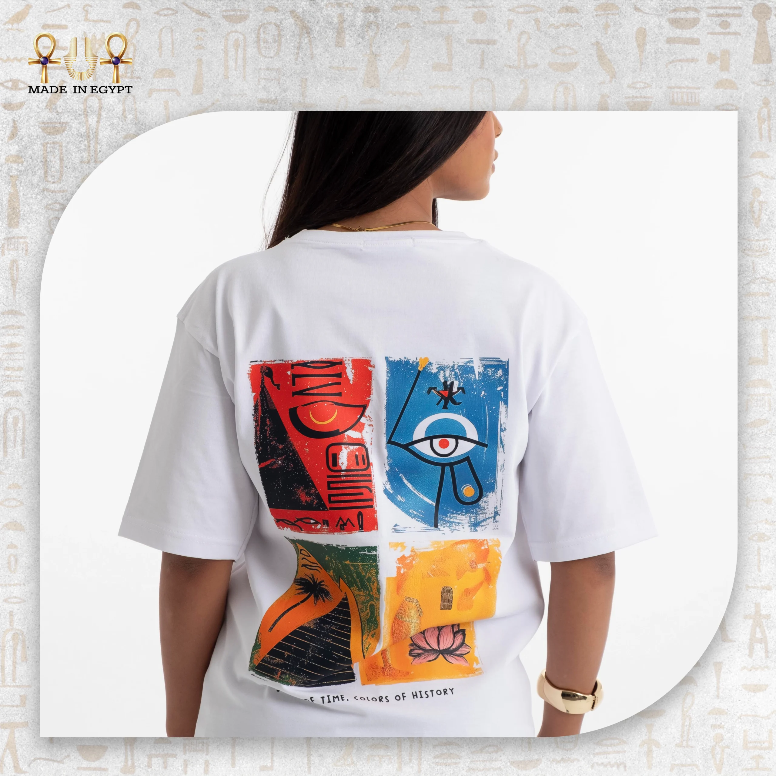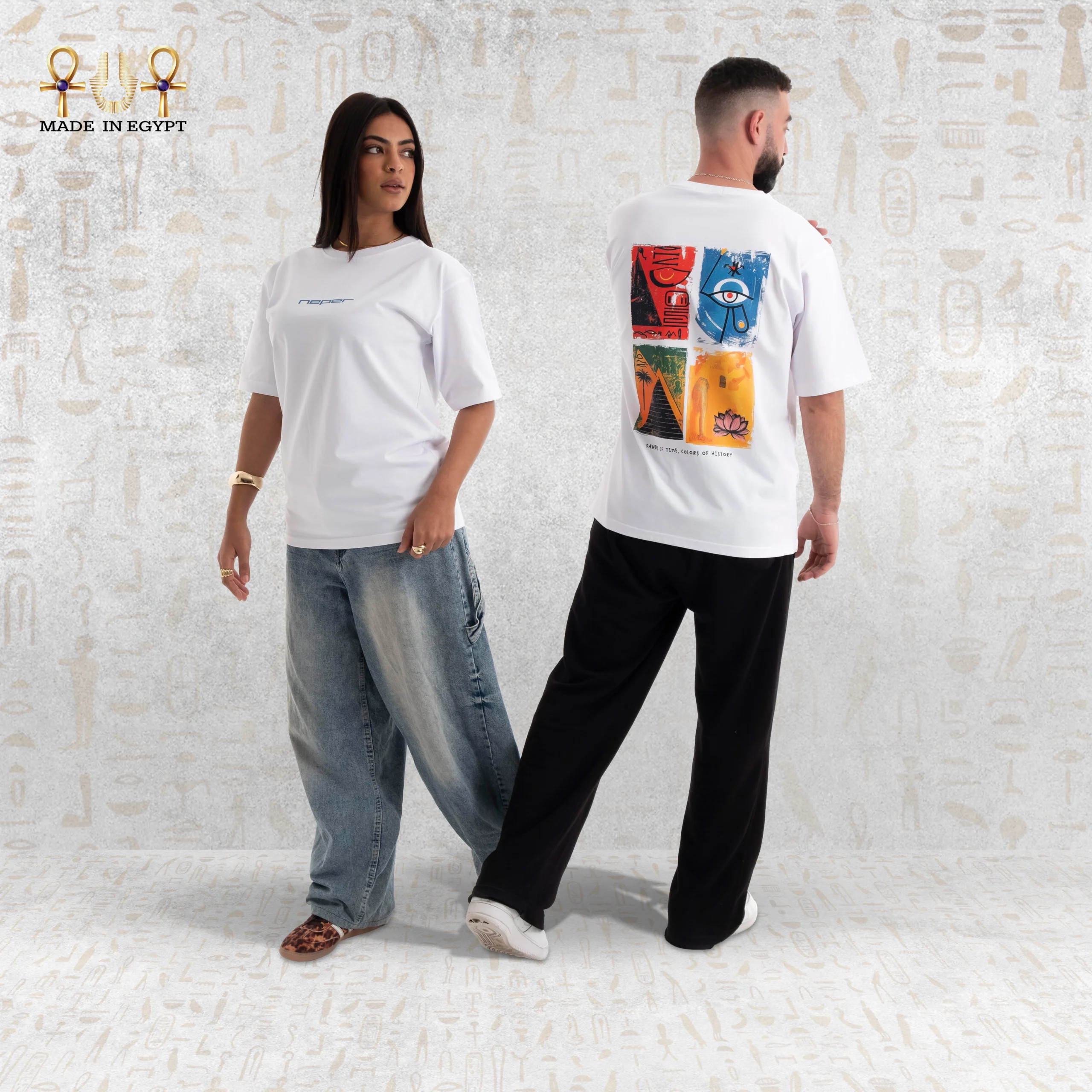 A NAPER t-shirt fusing ancient Egyptian symbols with modern street art — colorful, bold, and full of heritage energy.