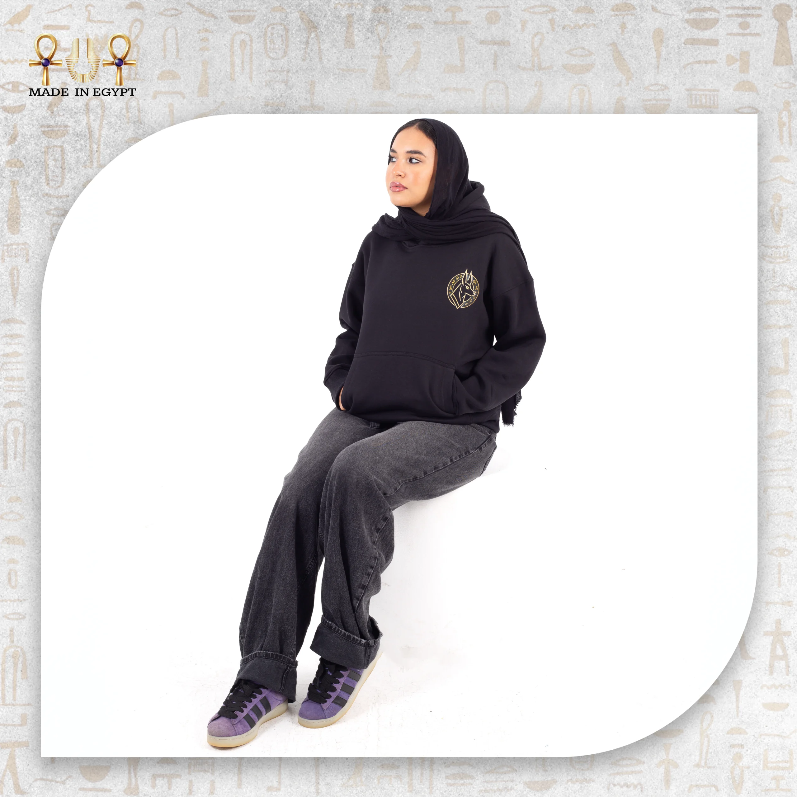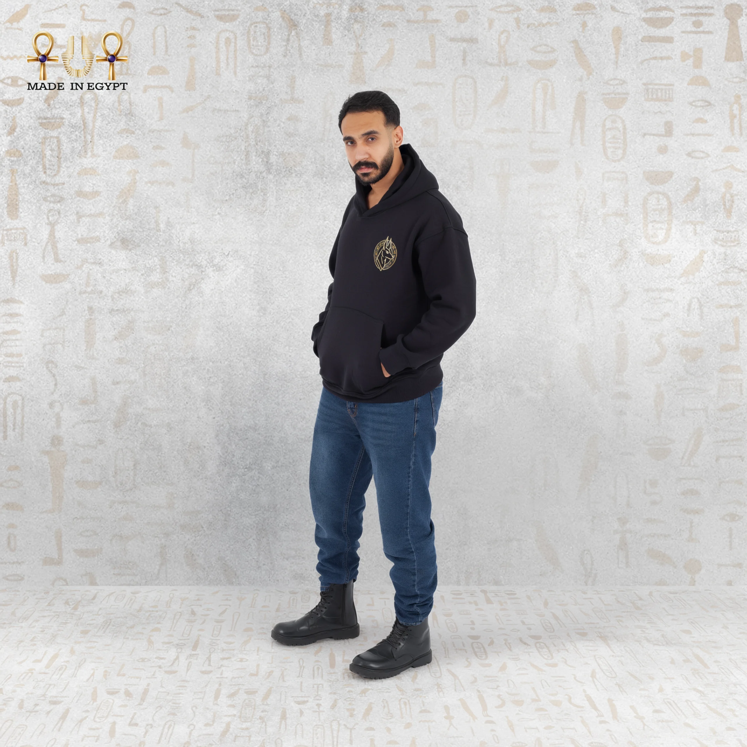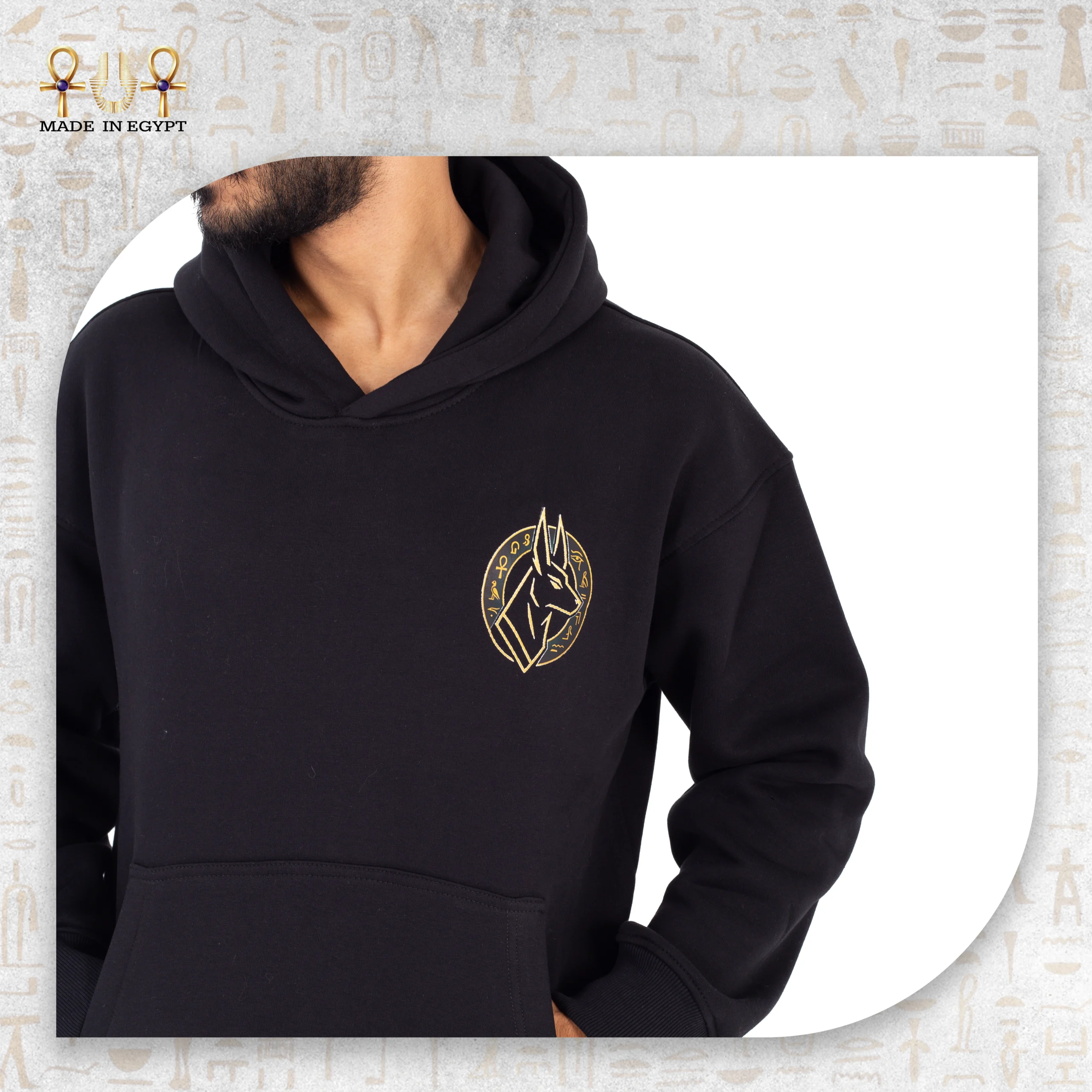 The Anubis Guardian Hoodie is inspired by the ancient Egyptian symbol of protection and strength. Designed in a relaxed unisex fit, it offers all-day comfort with a soft, durable fabric. The minimal embroidered Anubis emblem adds a refined touch while carrying deep cultural meaning, blending Egyptian heritage with modern streetwear. Proudly made in Egypt, this hoodie is a statement of identity, simplicity, and timeless style.