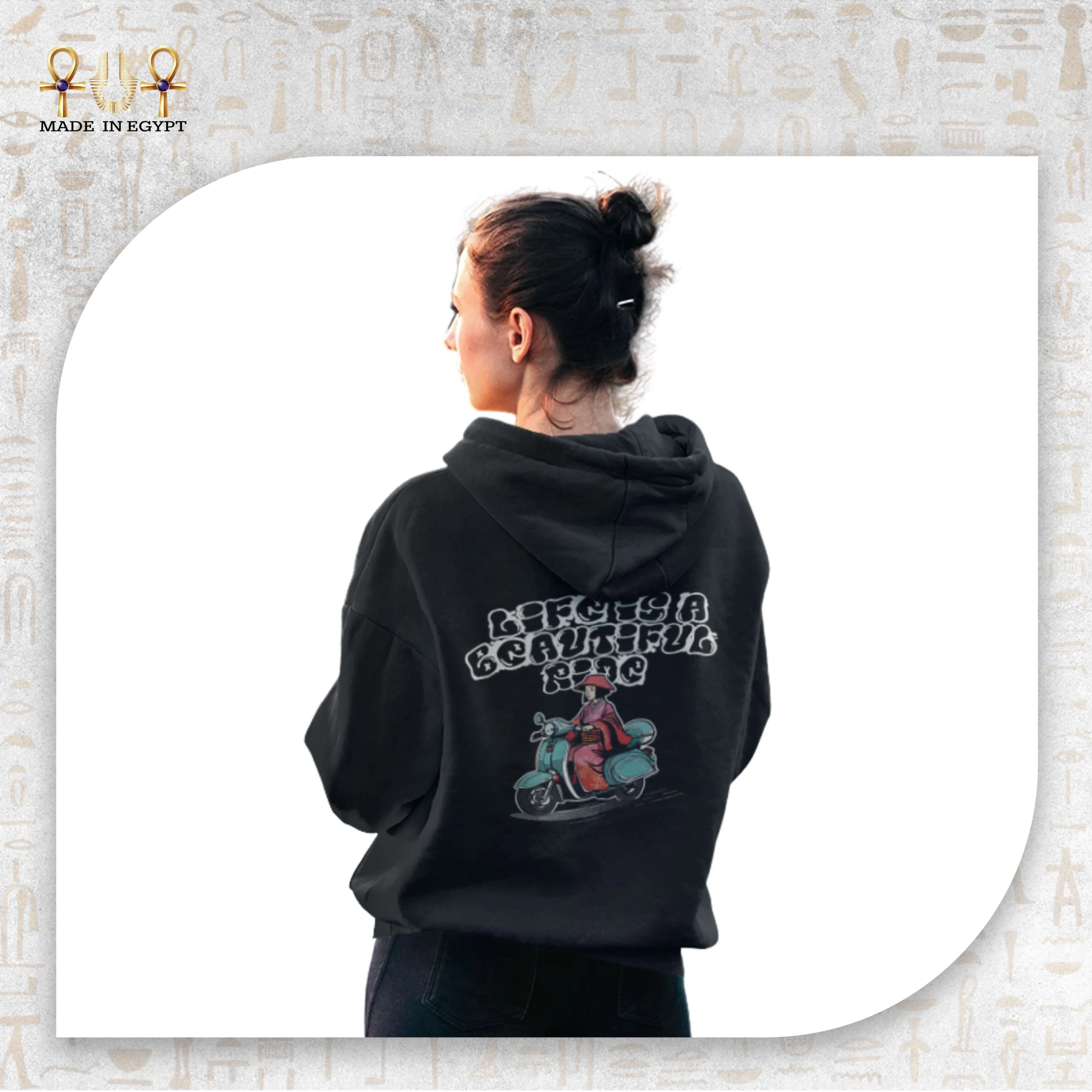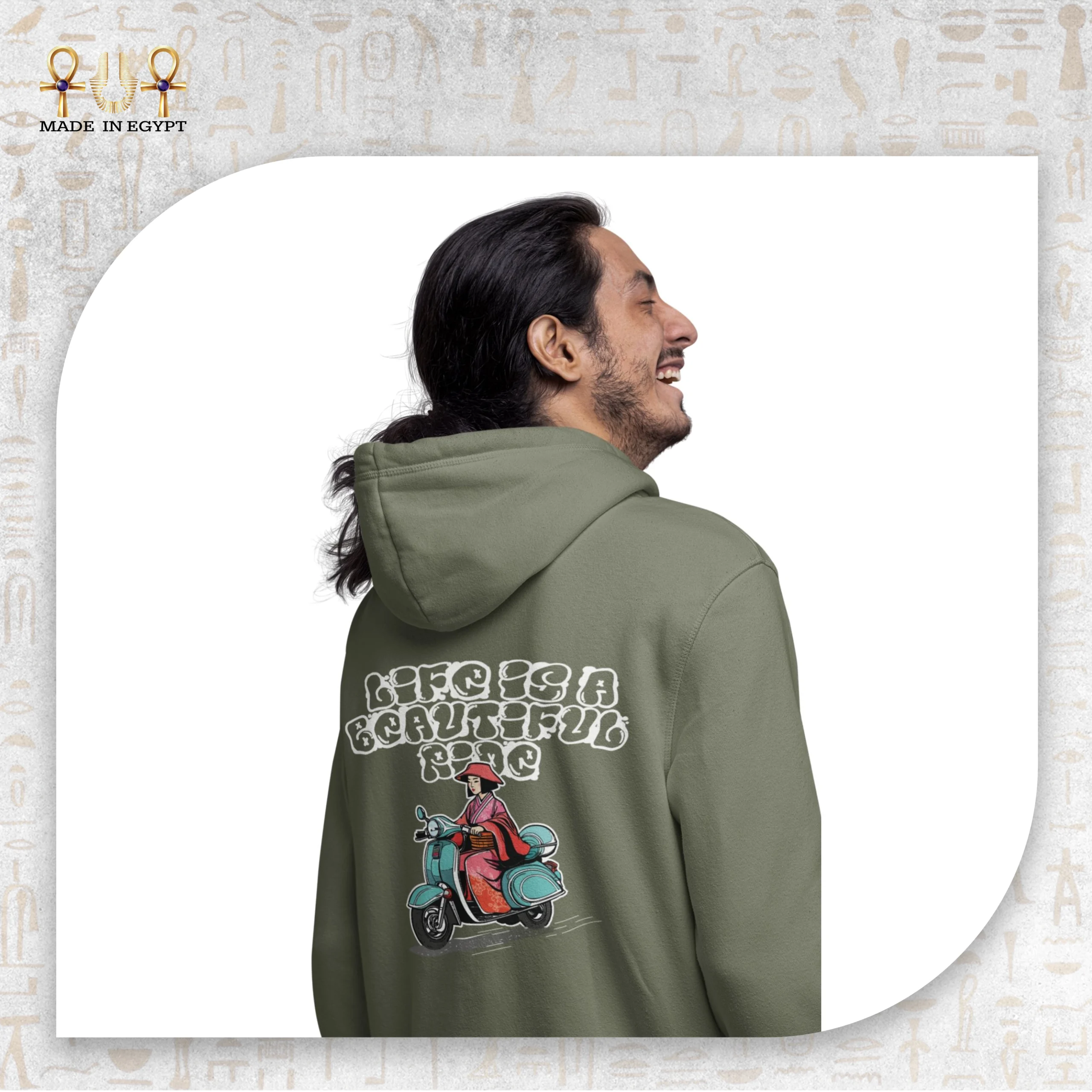 Proudly Made in Egypt, the Beautiful Ride Hoodie embodies thoughtful craftsmanship and a feel-good philosophy. It’s more than a hoodie — it’s a wearable reminder to smile, live lightly, and enjoy the journey.