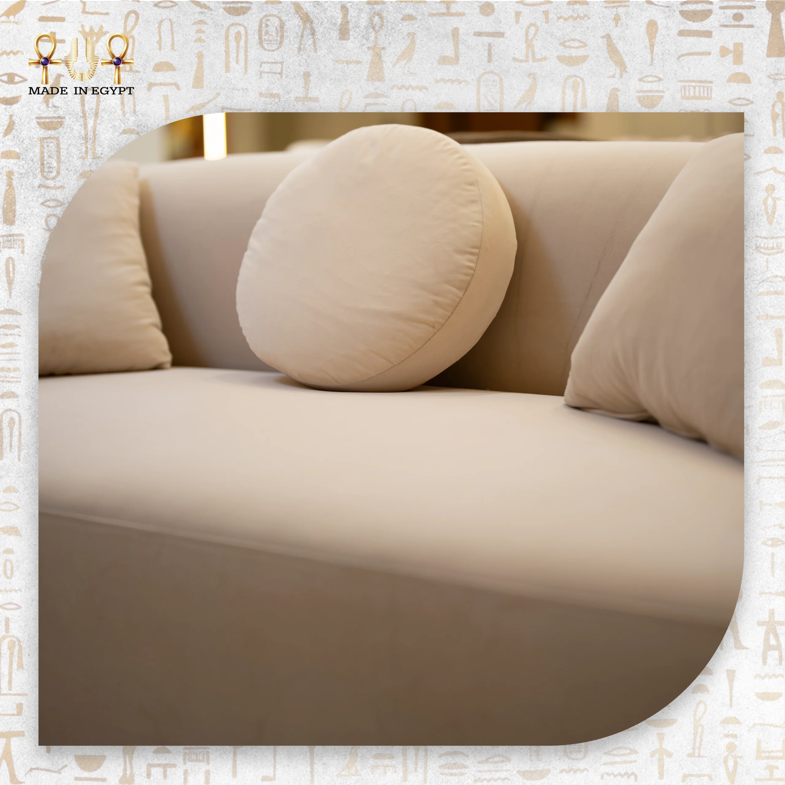 This velvet sofa set features clean lines, refined stitching, and small round cushions that complete its contemporary look. Furthermore, the simple yet elegant design allows it to blend seamlessly into various home décor themes. Its balance of comfort and aesthetics creates a welcoming atmosphere in any room.