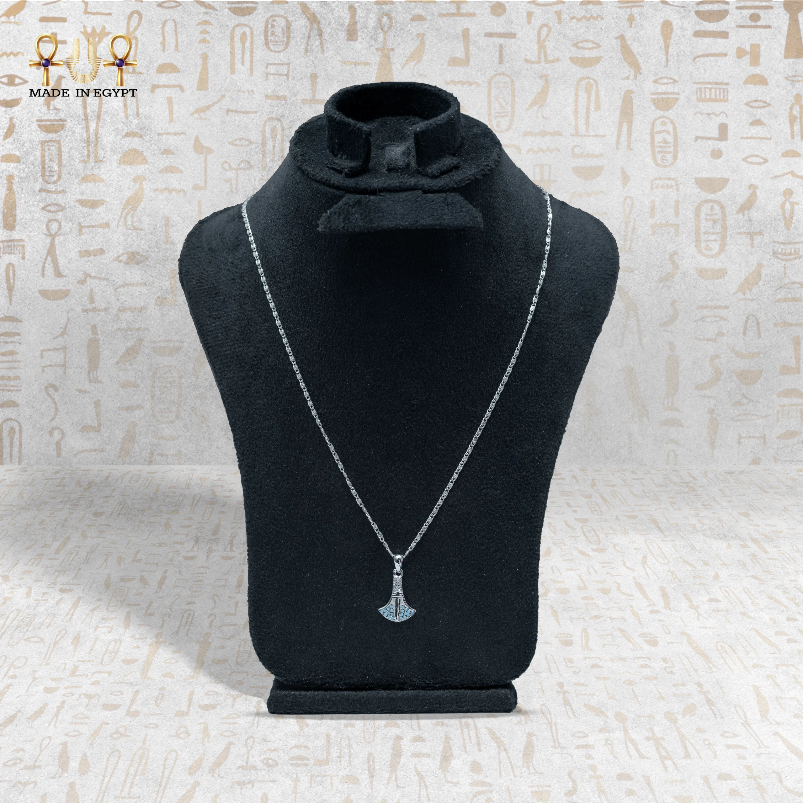 Its design, inspired by ancient Pharaonic symbols, makes it more than just an accessory — it’s a story of heritage and beauty told upon your neck.