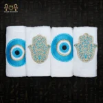 The Blue Evil Eye Guest Towels embody the essence of modern Egyptian design — where practicality meets cultural expression. Perfect as a gift for weddings, housewarmings, or hospitality décor, they combine artistic embroidery with lasting comfort. Each piece tells a story of protection, craftsmanship, and grace, transforming everyday use into an experience of serenity and style.