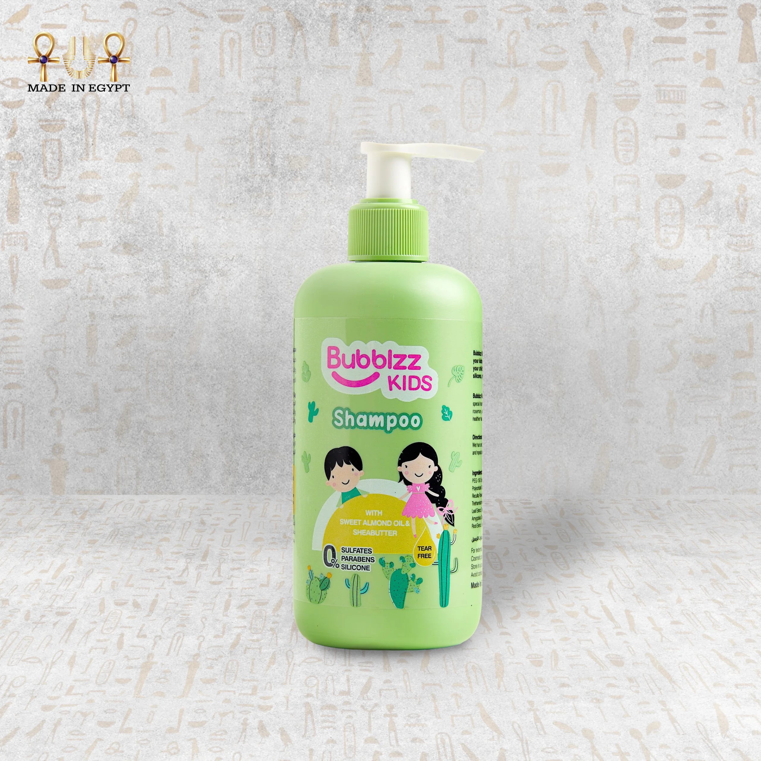 Bubblizz Kids Shampoo gently and safely cleans your child’s hair with a formula free from sulfates, parabens, and silicone. Enriched with sweet almond oil and shea butter to moisturize and nourish the hair, it features a tear-free formula that makes bath time easy and enjoyable.