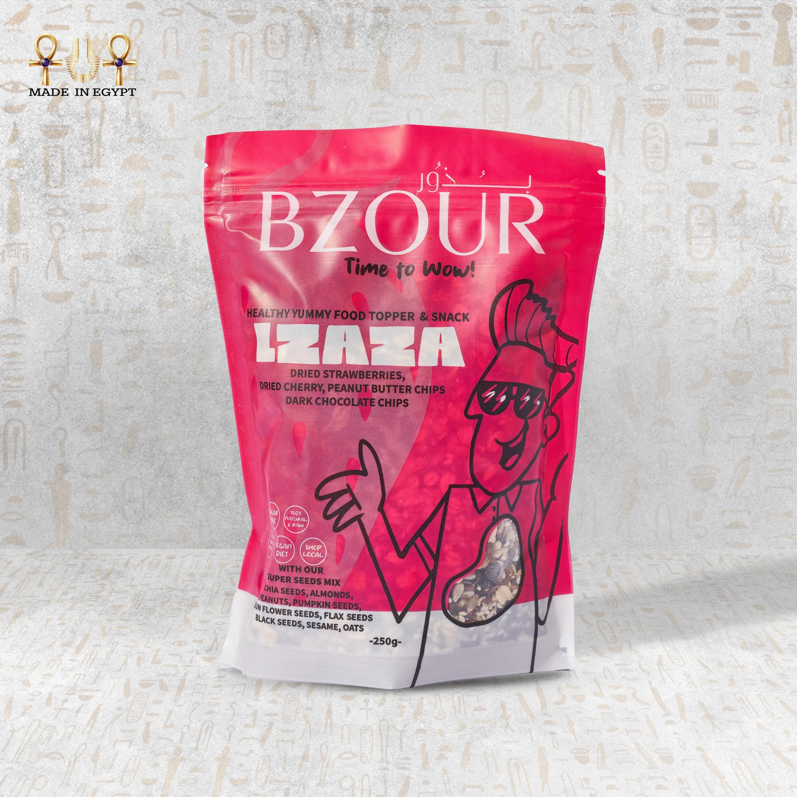 Finally, with every bite, you’ll taste happiness and balance — a blend of strawberry, cherry, and peanut butter that turns simple snacking into pure joy. BZOUR LEZAZA Mix isn’t just food; it’s your daily dose of flavor, health, and positivity.