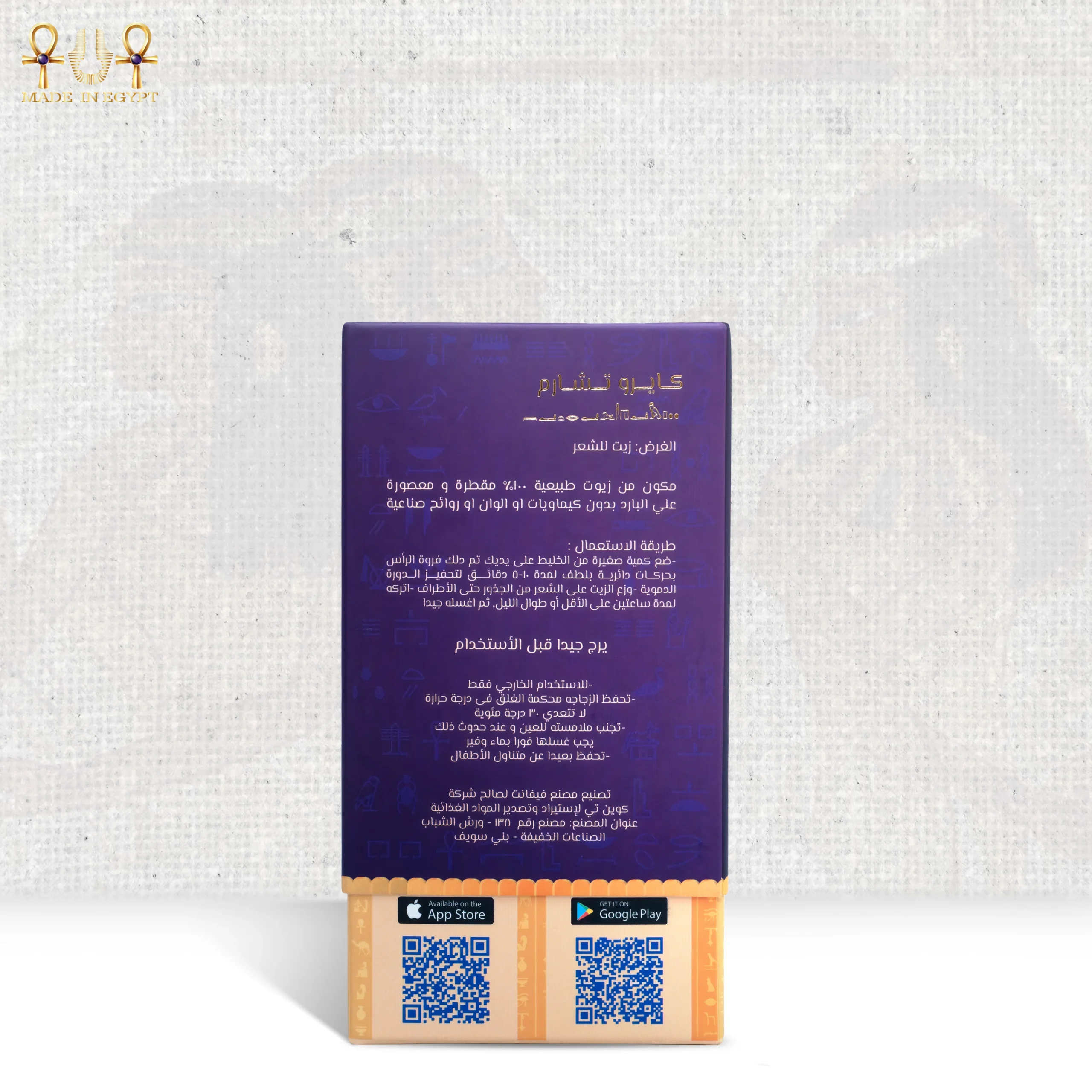 Back view of the CairoCharm Hair Oil packaging with detailed instructions and QR code.