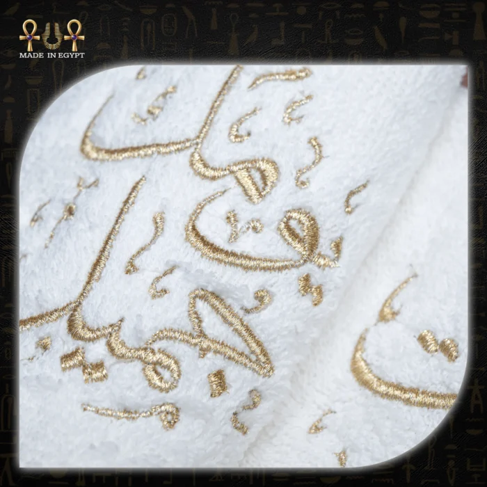 The embroidered Arabic calligraphy guest towel combines luxury and elegance. It is made from premium Egyptian cotton, renowned for its exceptional softness and excellent absorbency. Adorned with elegant golden embroidery that reflects the spirit of Arab heritage, it adds a refined touch — making it perfect for everyday use or as a sophisticated gift that expresses refined taste.