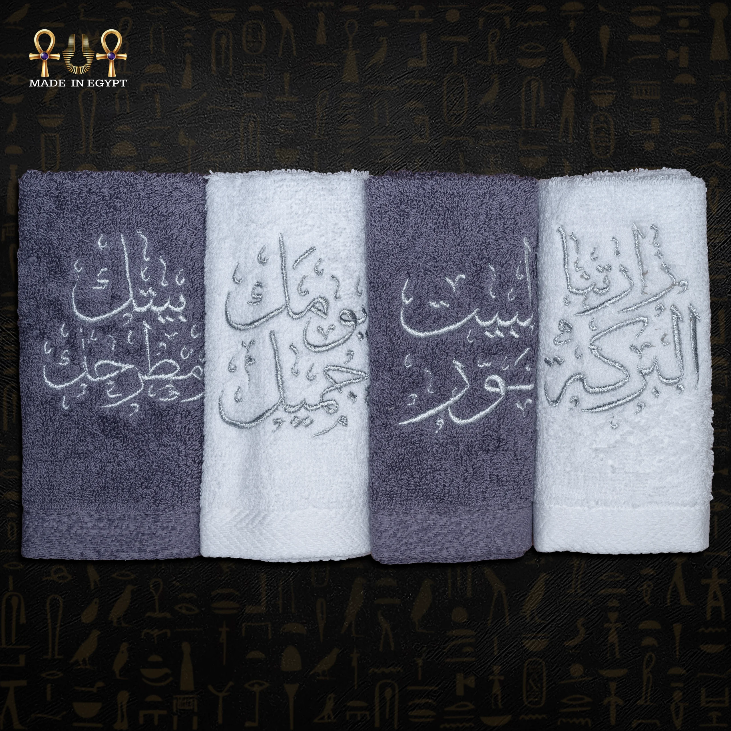 Ultimately, the Calligraphy Guest Towels represent more than comfort. They celebrate Egyptian heritage by blending traditional calligraphy with modern design, creating a timeless piece that brings warmth and sophistication to every home.
