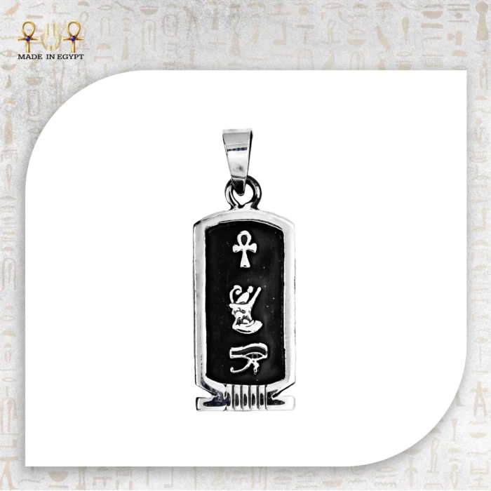 At the core of the pendant are three iconic hieroglyphs: