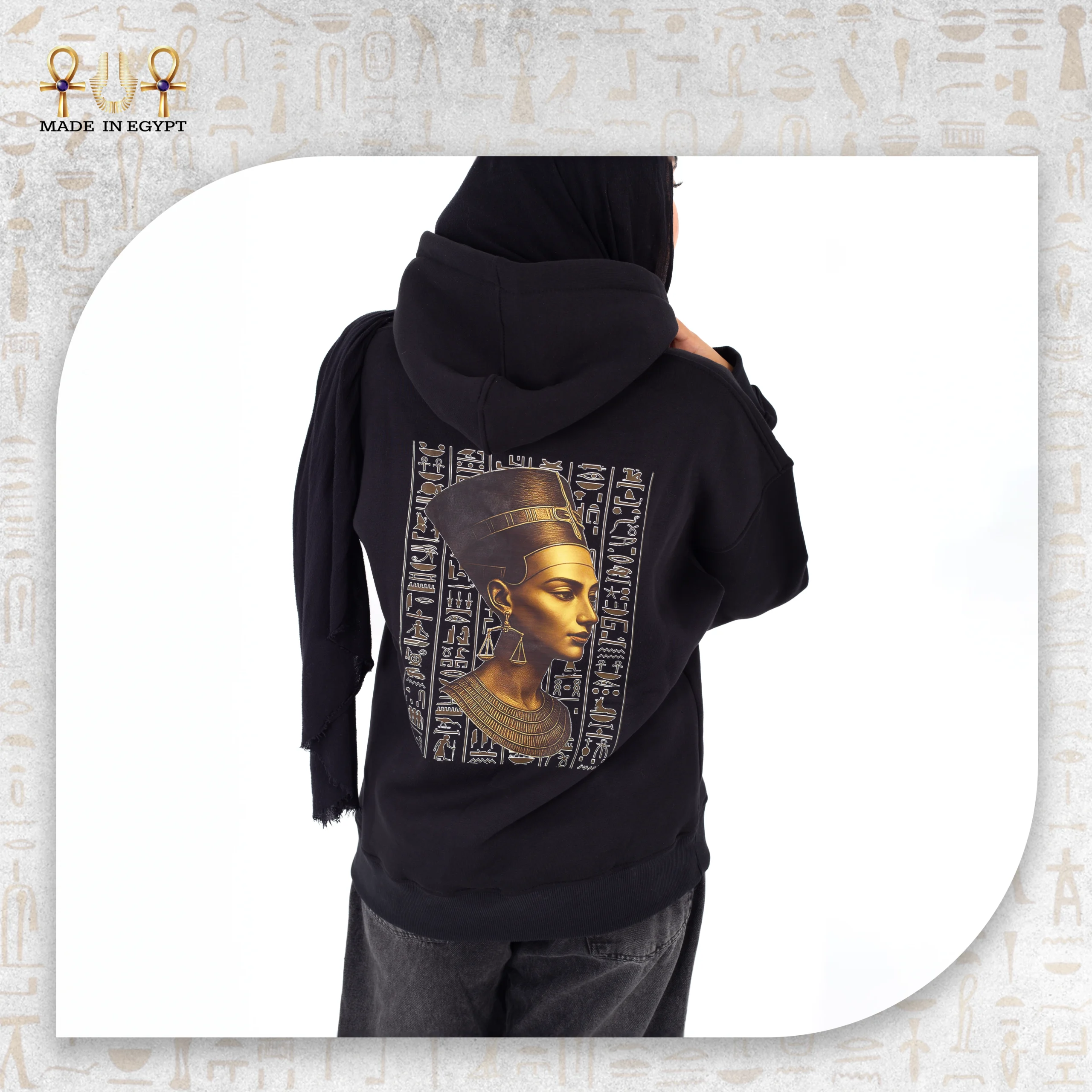 The Nefertiti Gold Hoodie is more than a casual piece. It is a statement rooted in identity, culture, and timeless elegance. Inspired by Queen Nefertiti, one of the most powerful women in ancient Egyptian history, this design transforms historical symbolism into modern fashion.