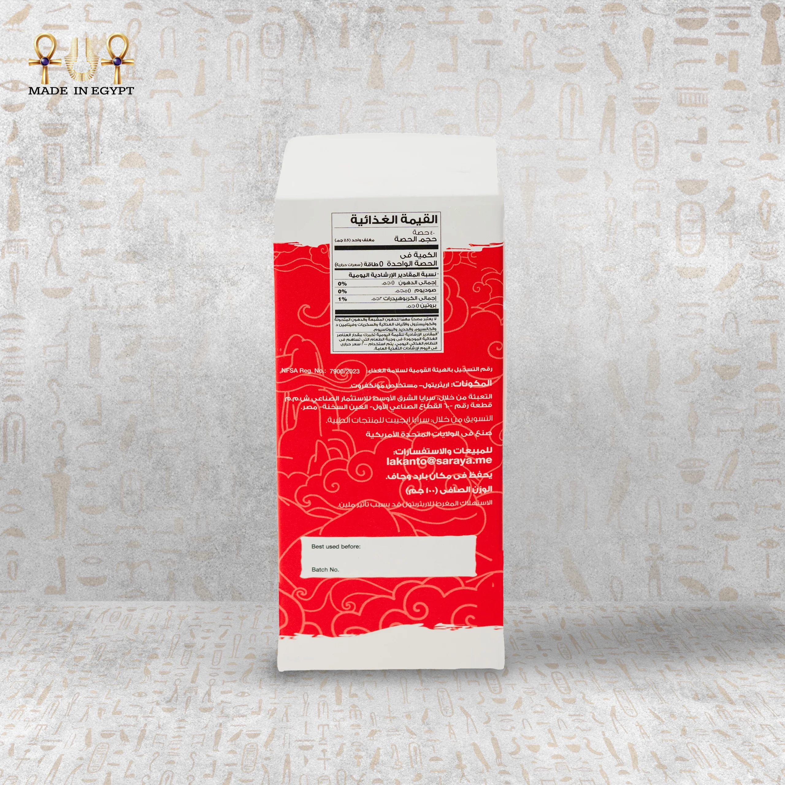 Front packaging of Spicy Warmth cinnamon and ginger herbal tea by Haj Arafa, showing 20 bags with 100% natural ingredients.