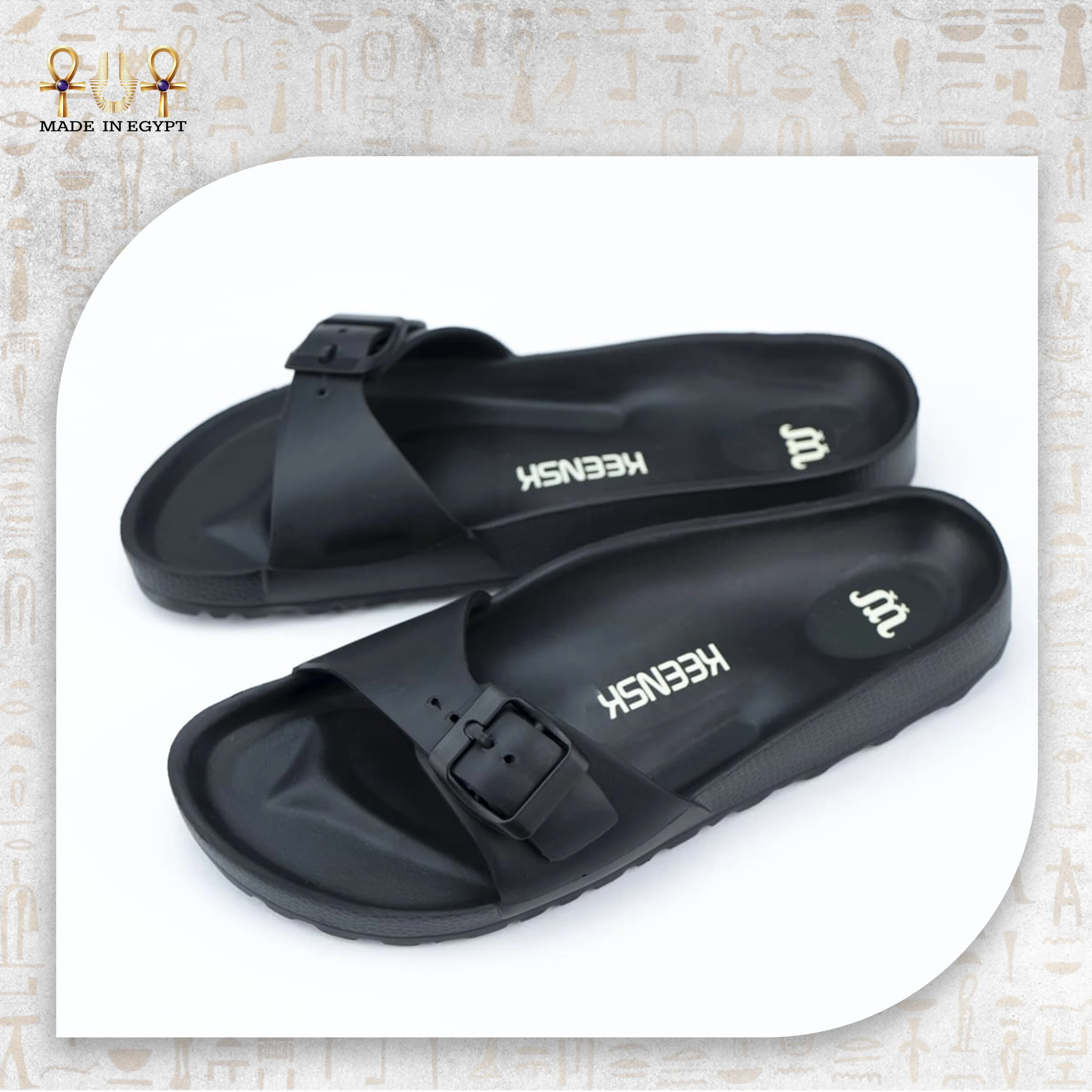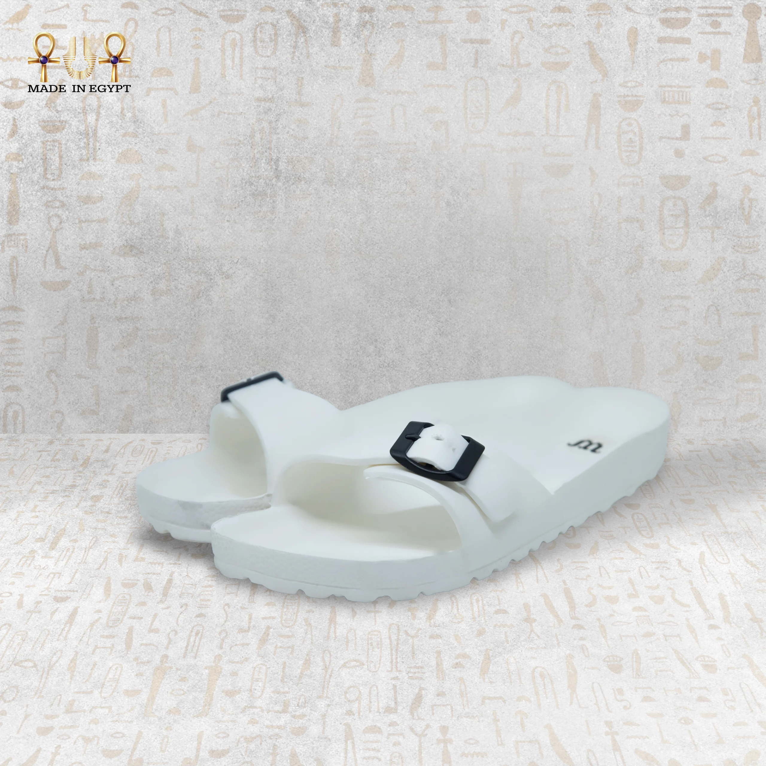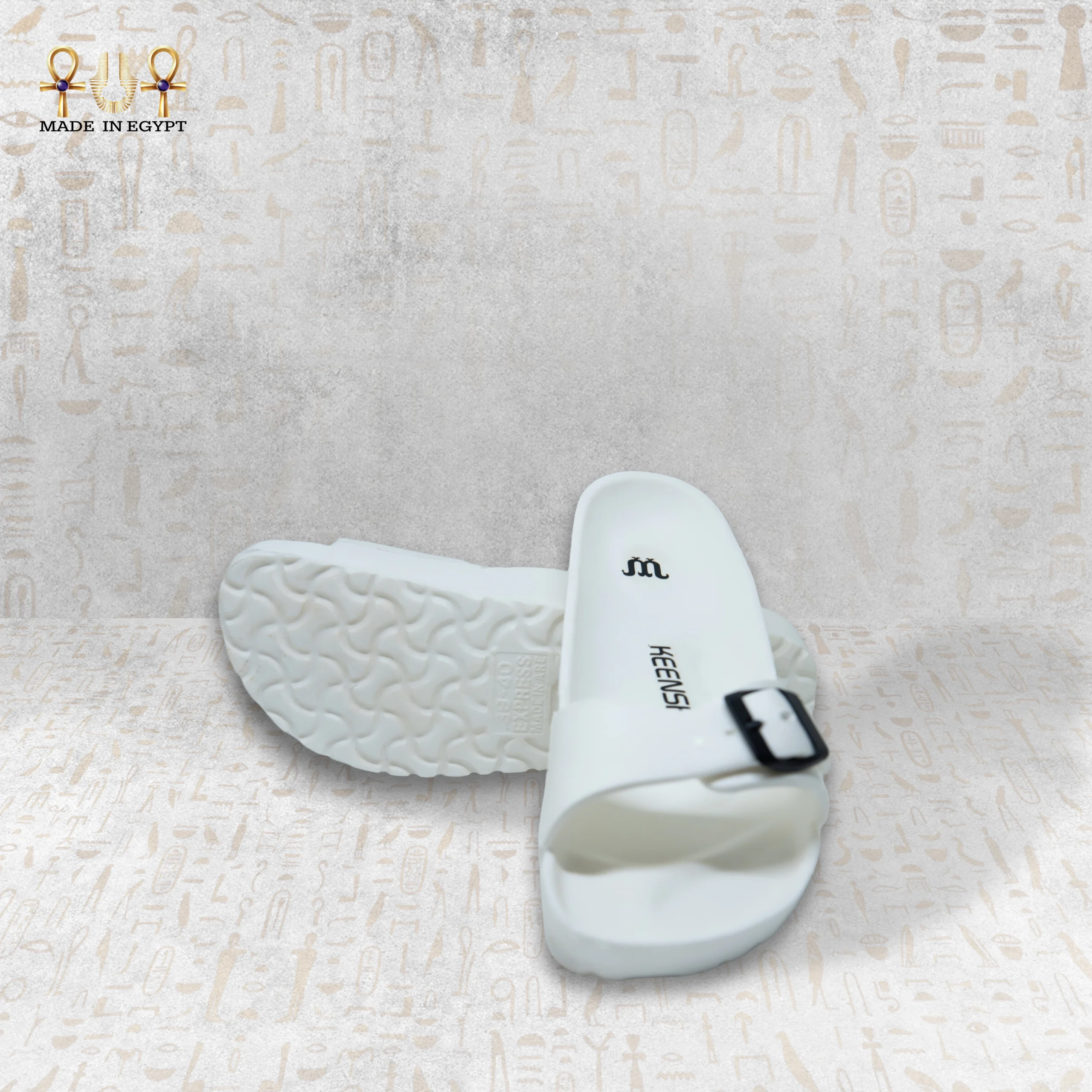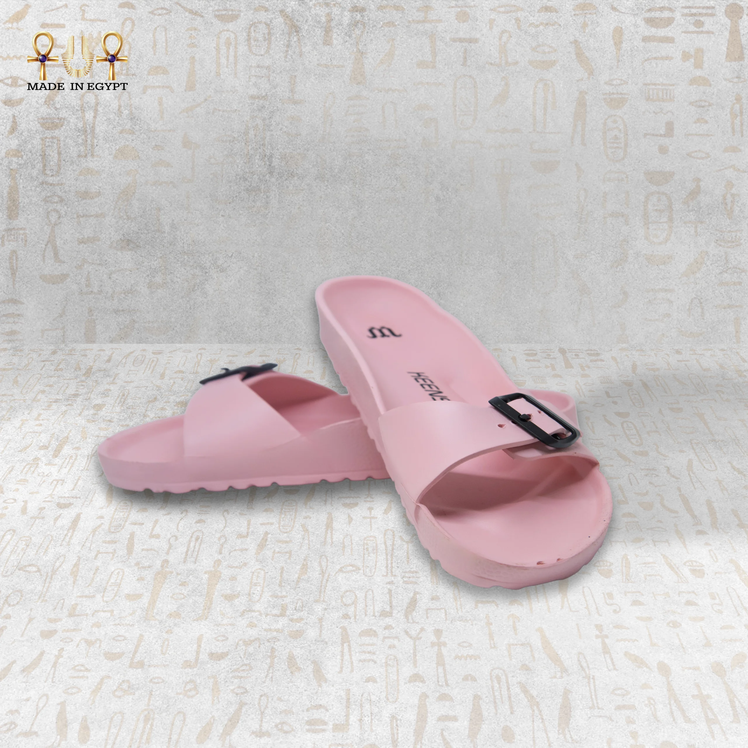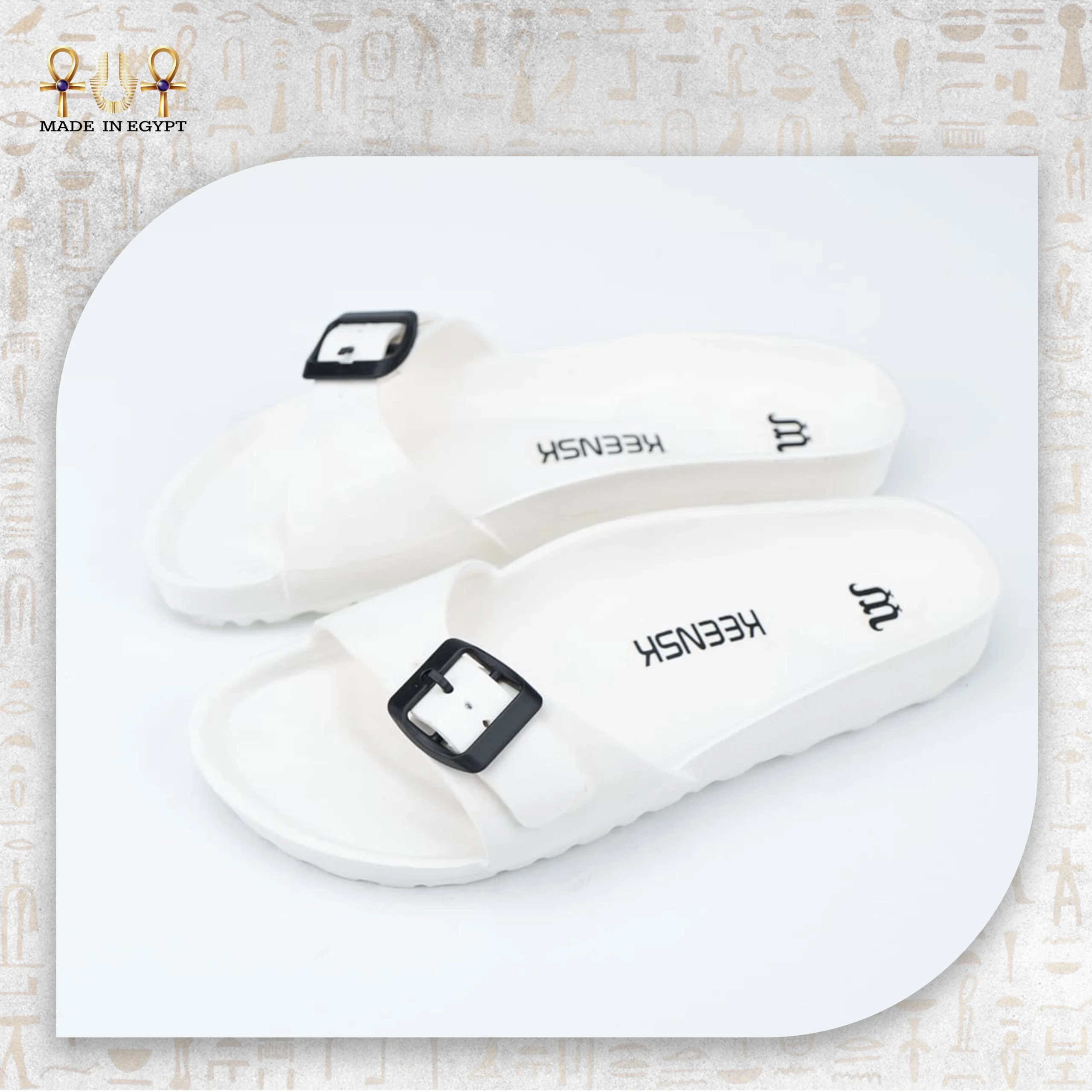 Lightweight foam slippers with a stylish buckle for daily comfort and elegance.